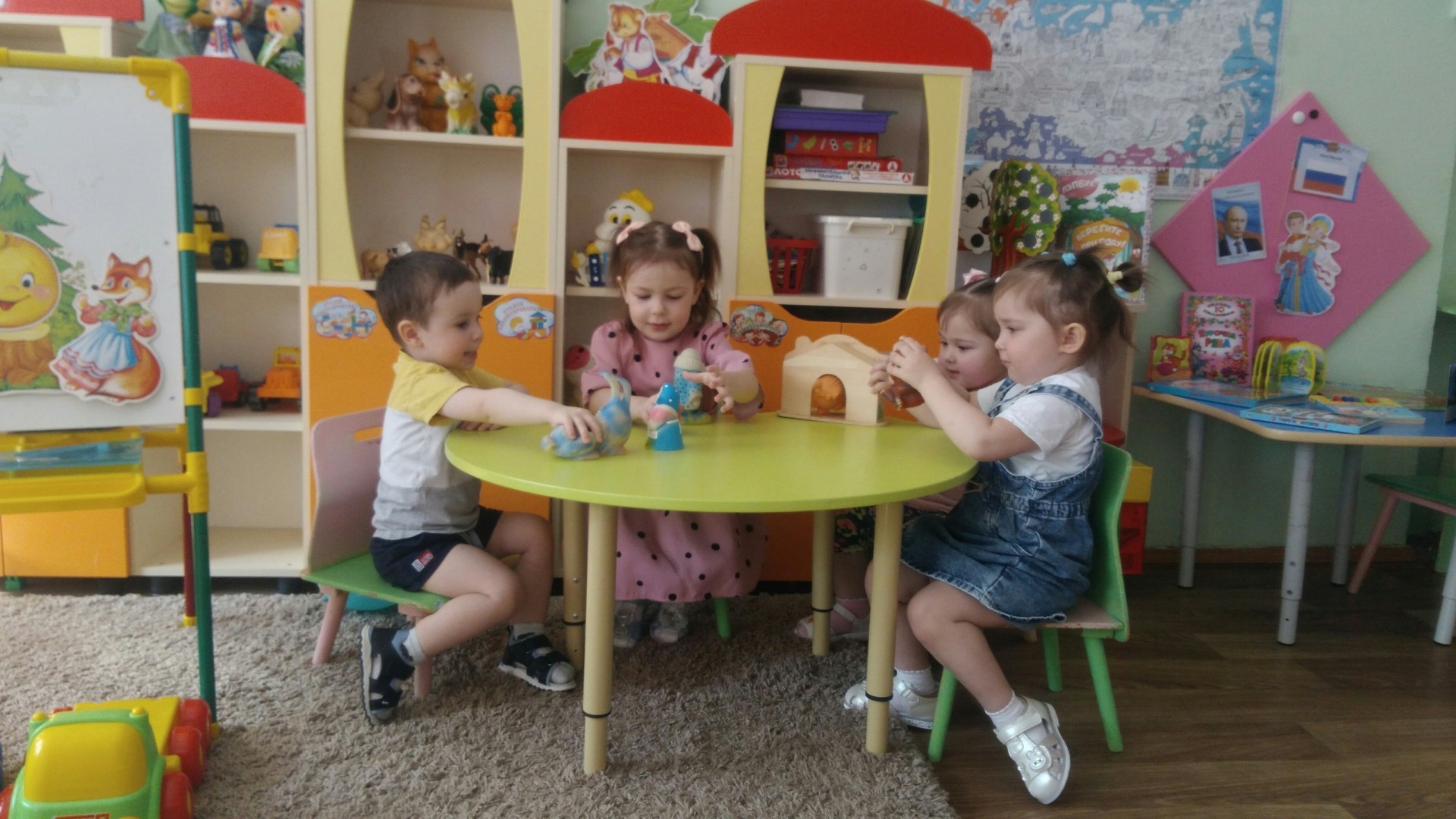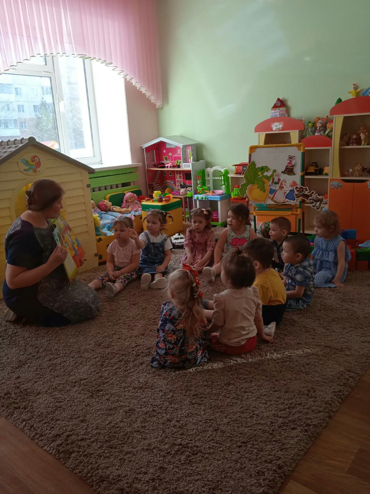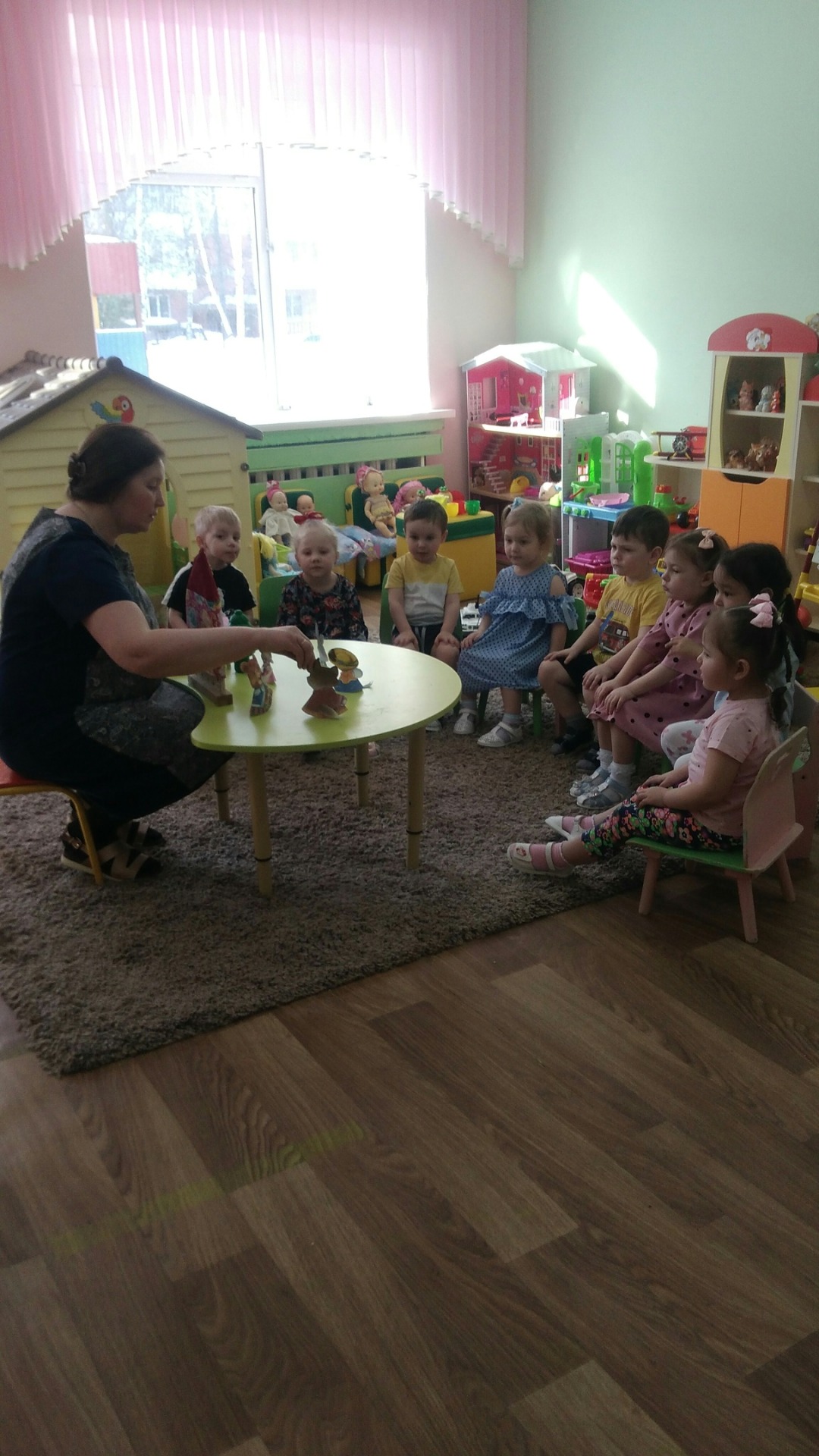 Маленьким детям из группы “Клубничка” мы не только читаем и рассказываем русские народные и авторские сказки, но еще и показываем их с помощью разных видов театра – это «Репка», Колобок», «Курочка ряба», «Маша и медведь», и т. д.