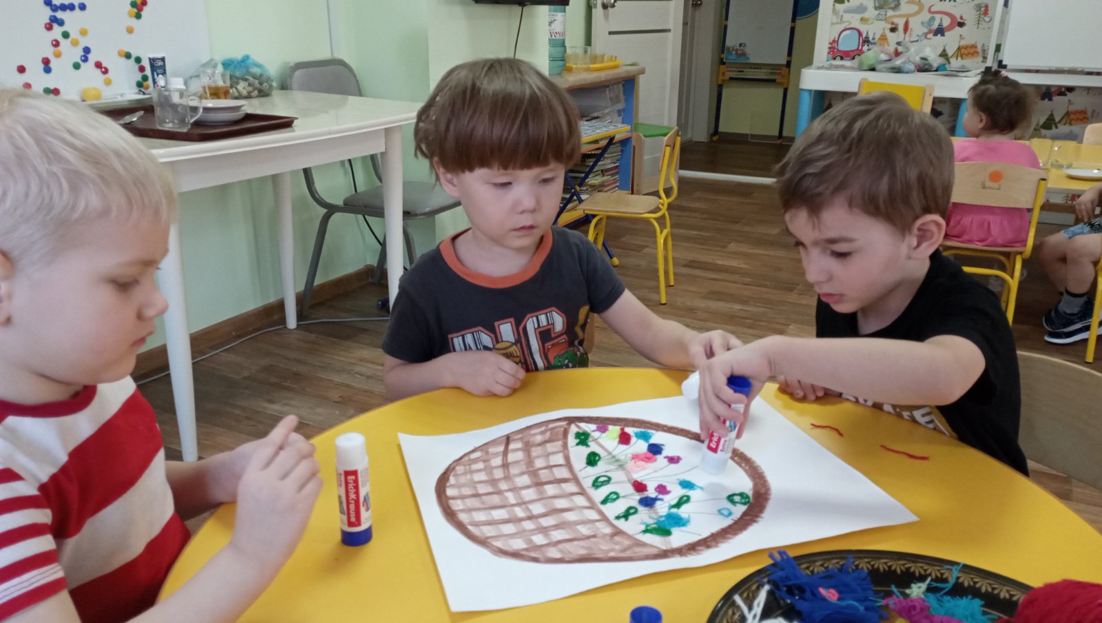 И поэтому не случайно ребята из группы "Солнышко", решили создать картины из цветов, используя шерстяные нитки, чтобы создать тёплое, солнечное настроение в группе.