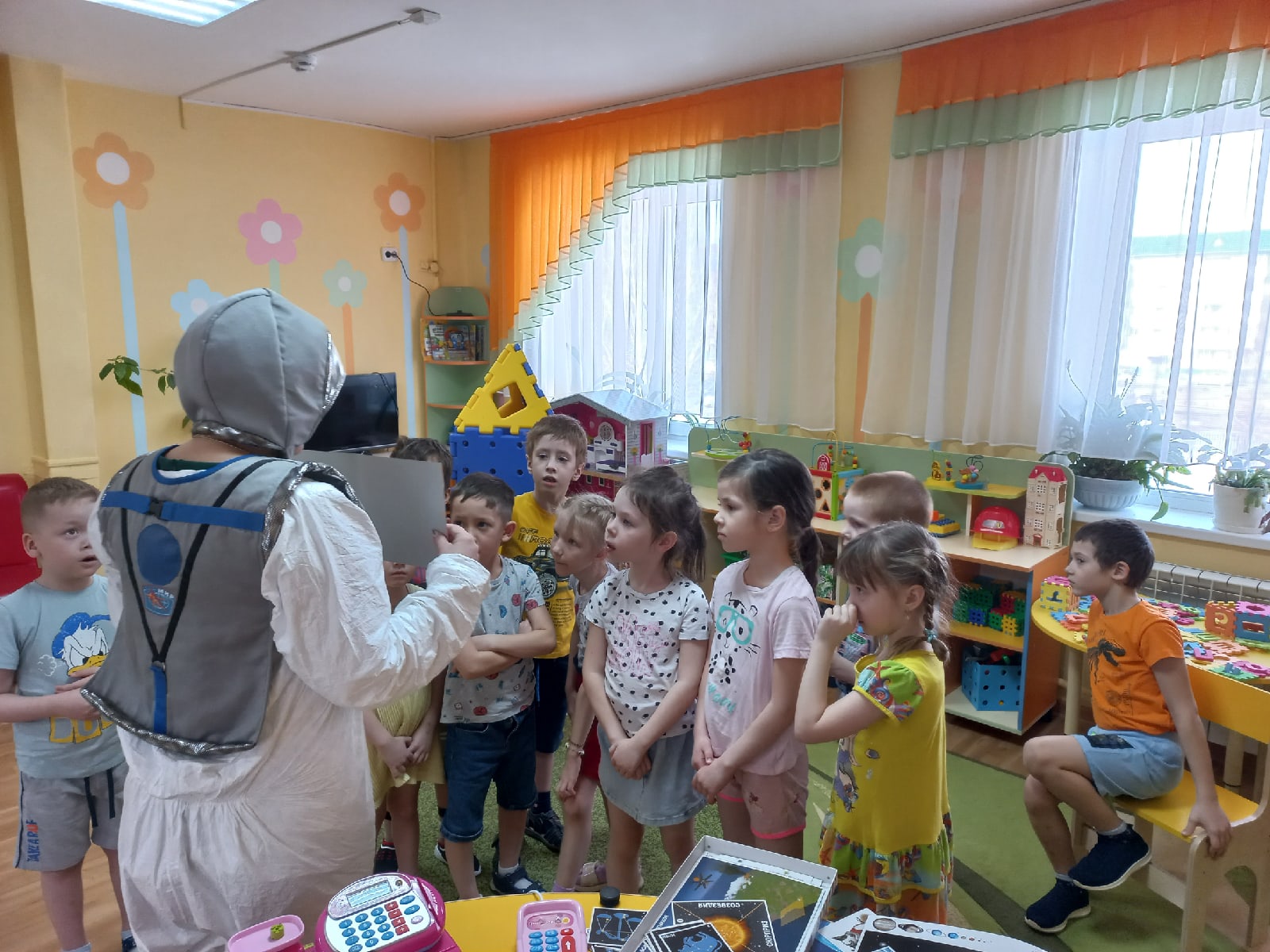 День Космонавтики по-особенному празднуется в детском саду. В гости к ребятам прилетел космонавт, который рассказал много интересного и познавательного по теме "Путешествие в Космос".