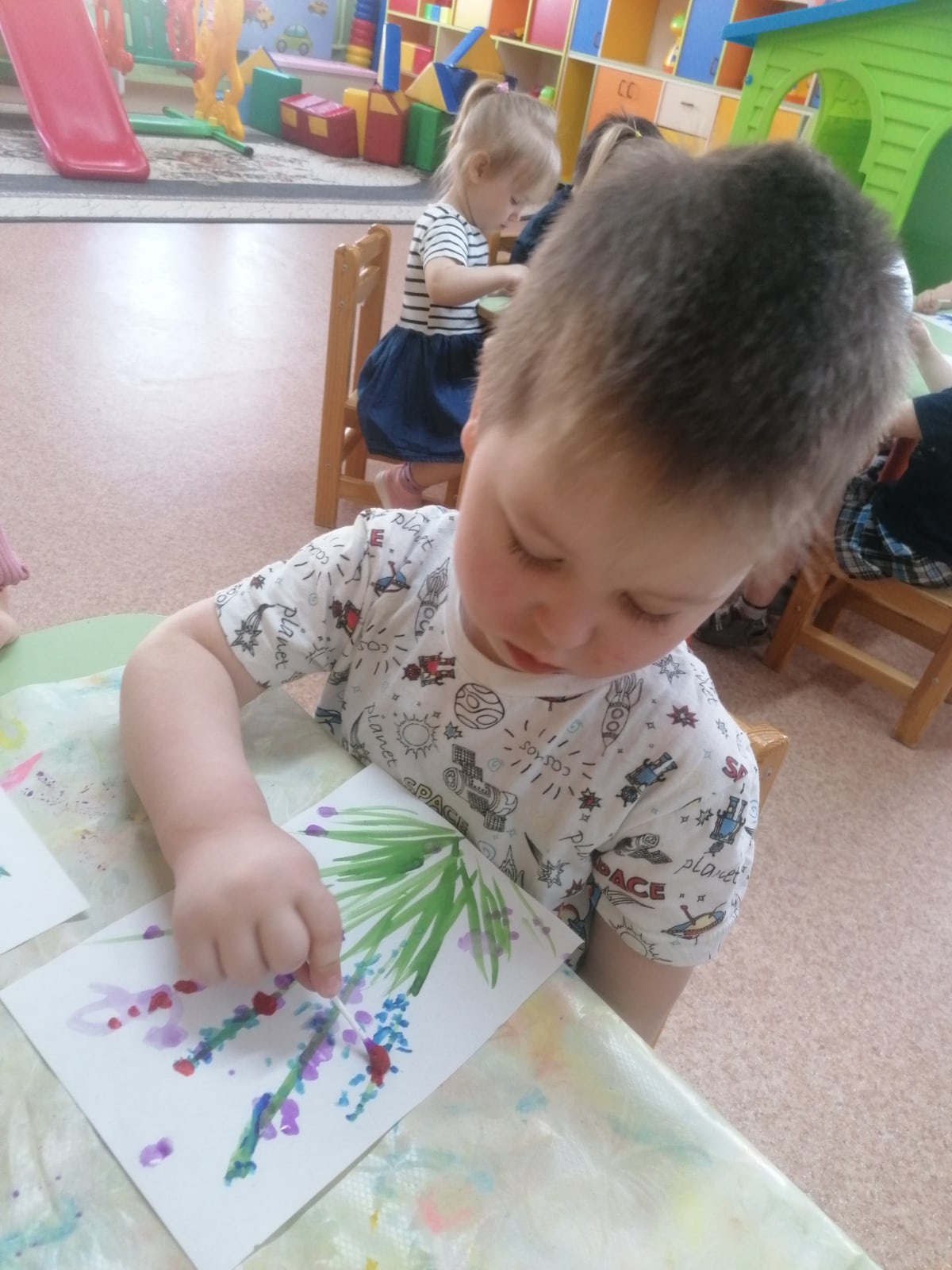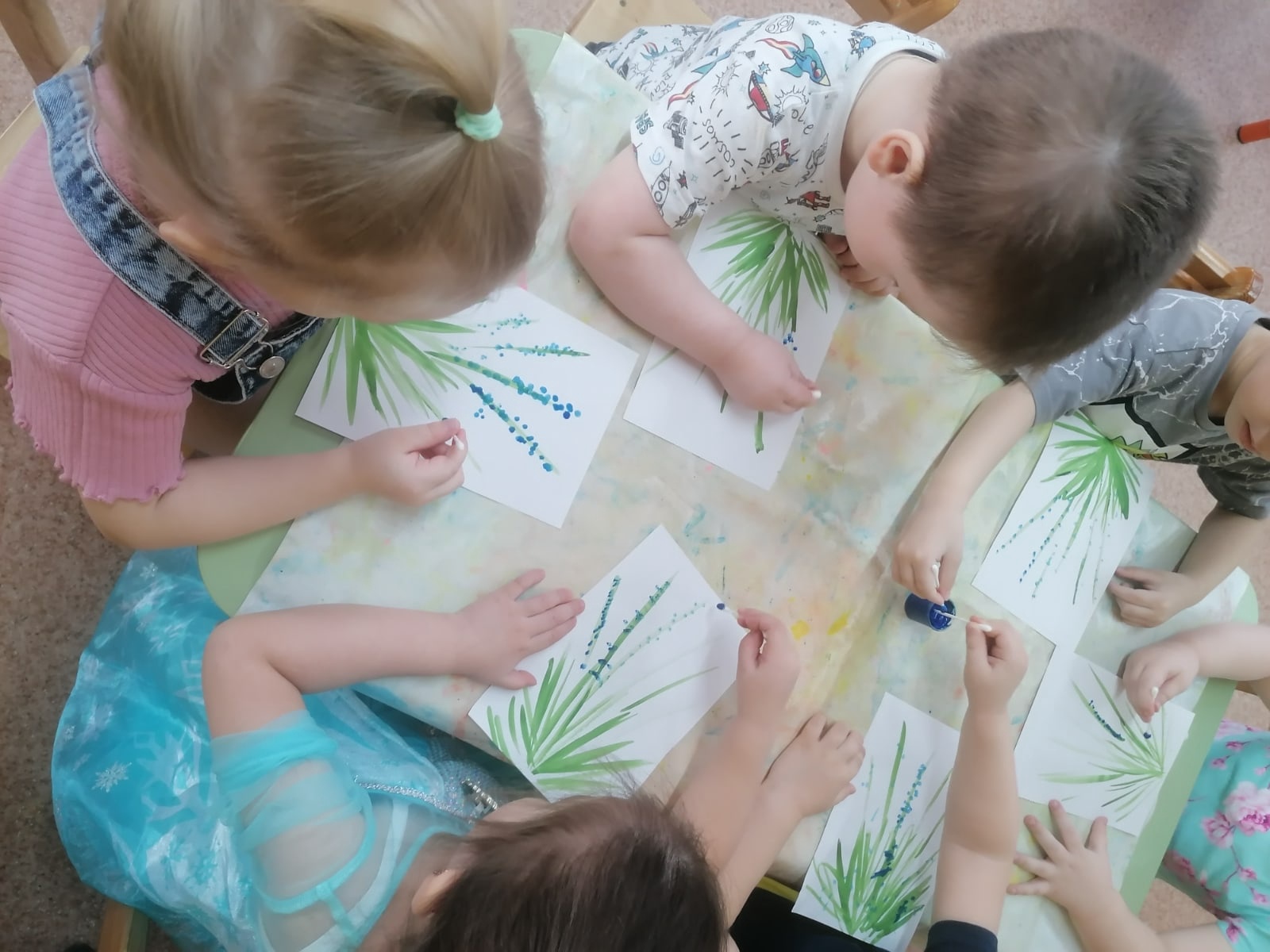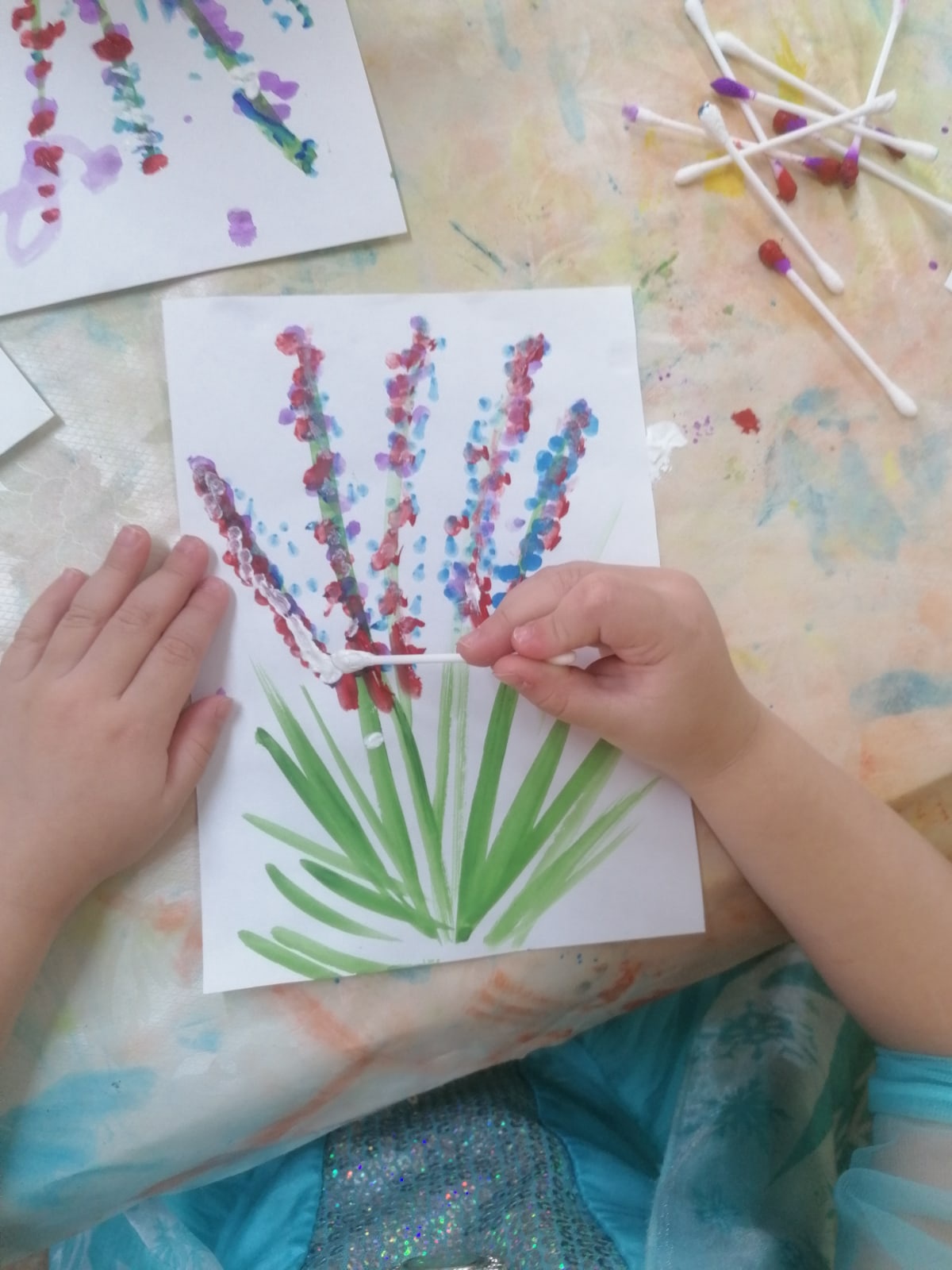 Ребята группы "Семицветик" решили отобразить это удивительное растение в своих рисунках. Для этого мы познакомили ребят с нетрадиционной техникой рисования ватными палочками.