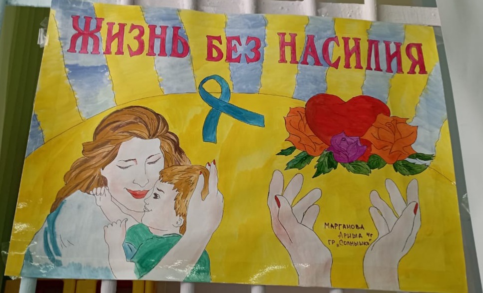 Родители группы "Солнышко" также решили отобразить на своих плакатах, что они против насилия над детьми.