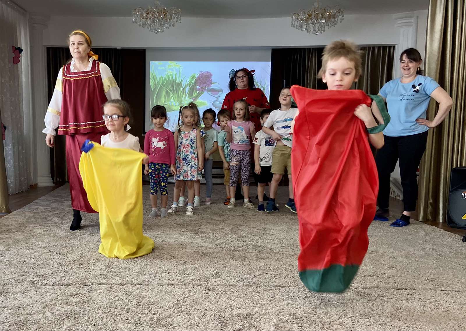 Для состязаний в быстроте и ловкости мы придумывали разнообразные эстафеты. Детям очень понравилось.