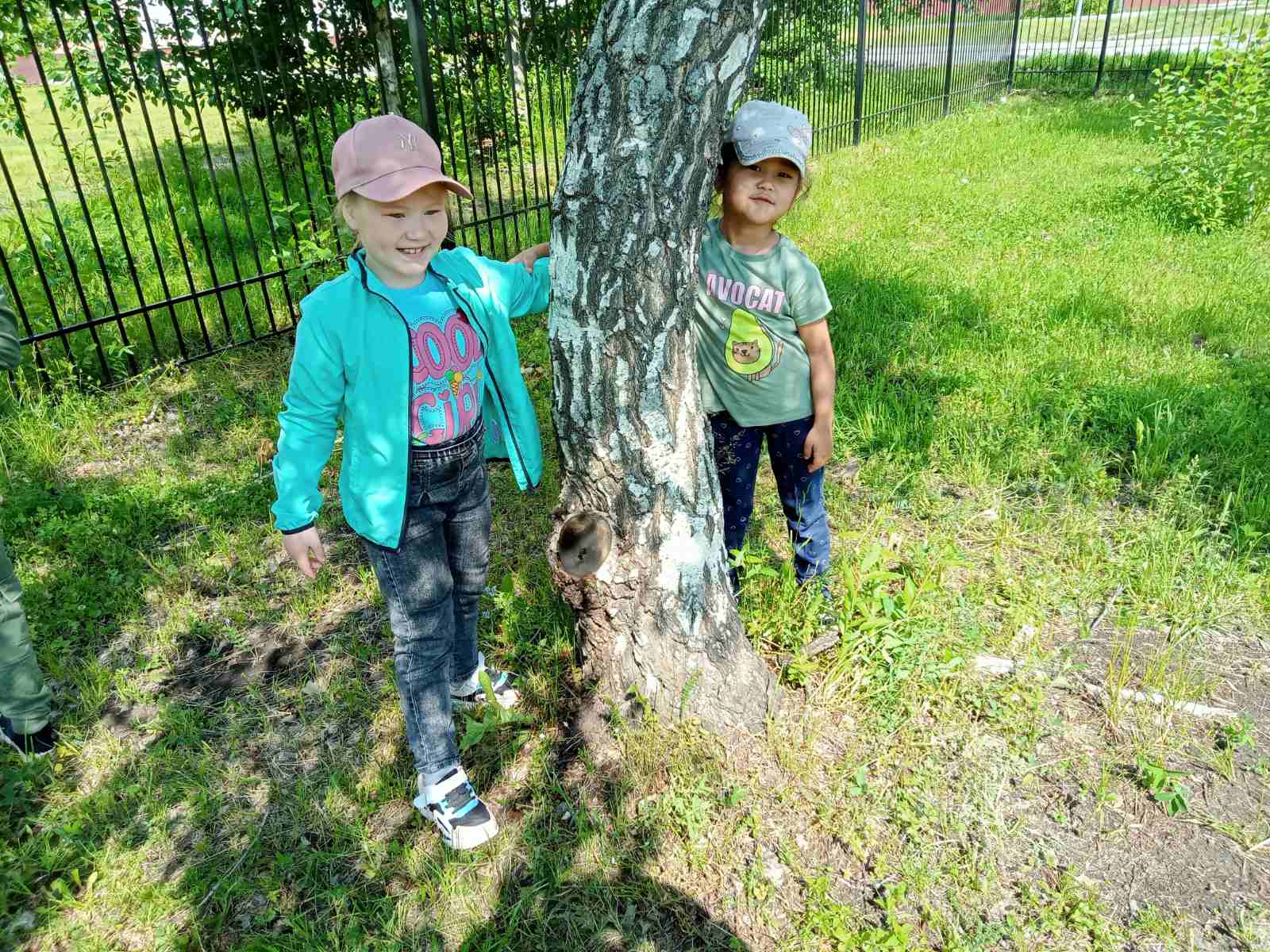 На поляне мы сравнивали березу, сосну и липу, находили сходства и отличия между ними.