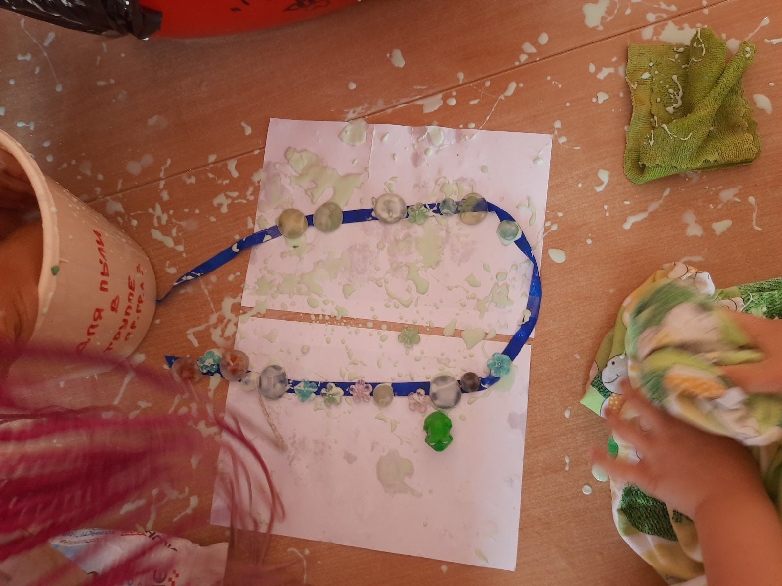 Бусины намного меньше бегемота, поэтому очень легко доставались из болота. Ожерелье для мамы - лягушки было спасено. Рабочий день подошел к концу, но желание помогать у наших детей не закончилось.