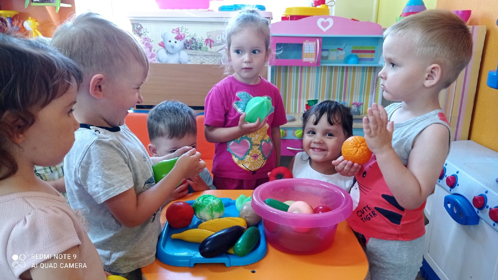 Узнали, в каких продуктах живут витамины! Готовили для кукол вкусный и полезный обед. И много- много играли на свежем воздухе!!!
