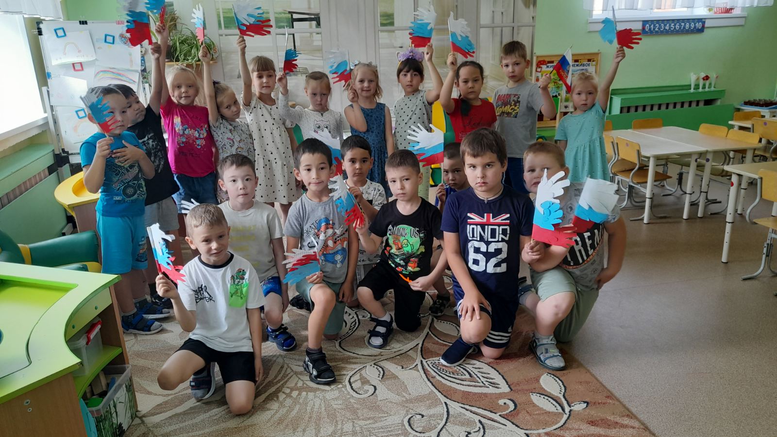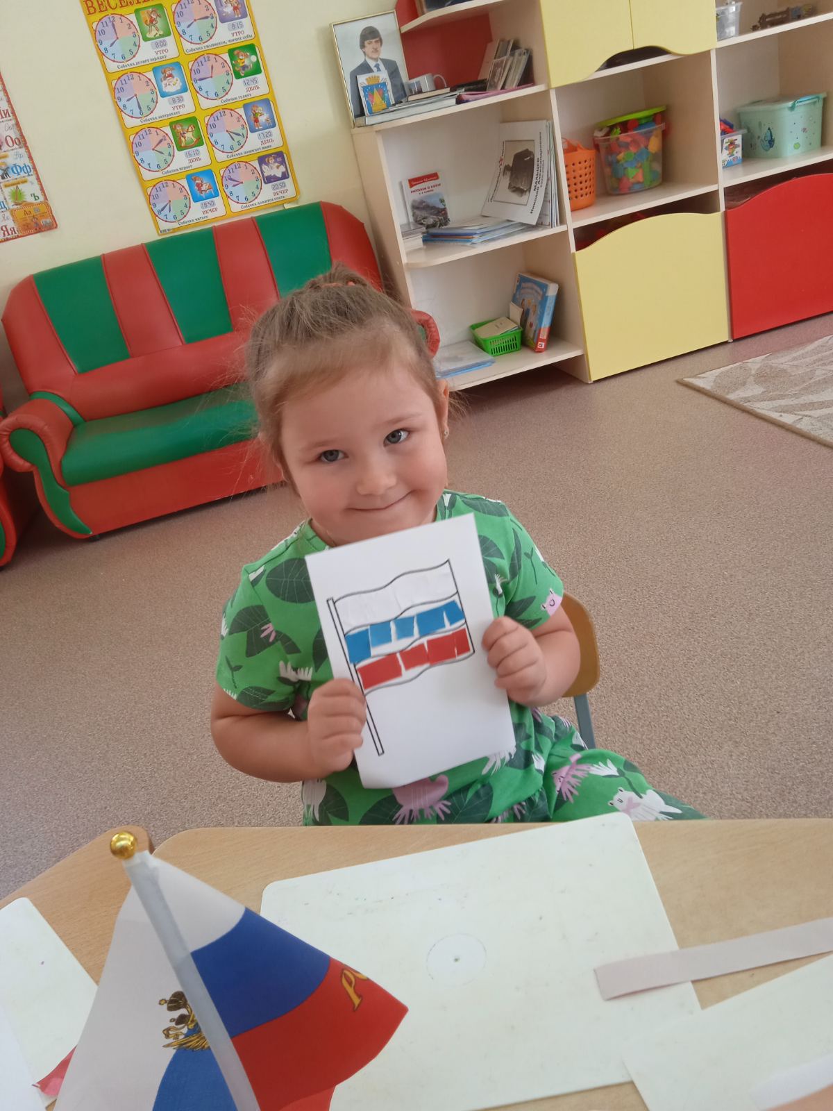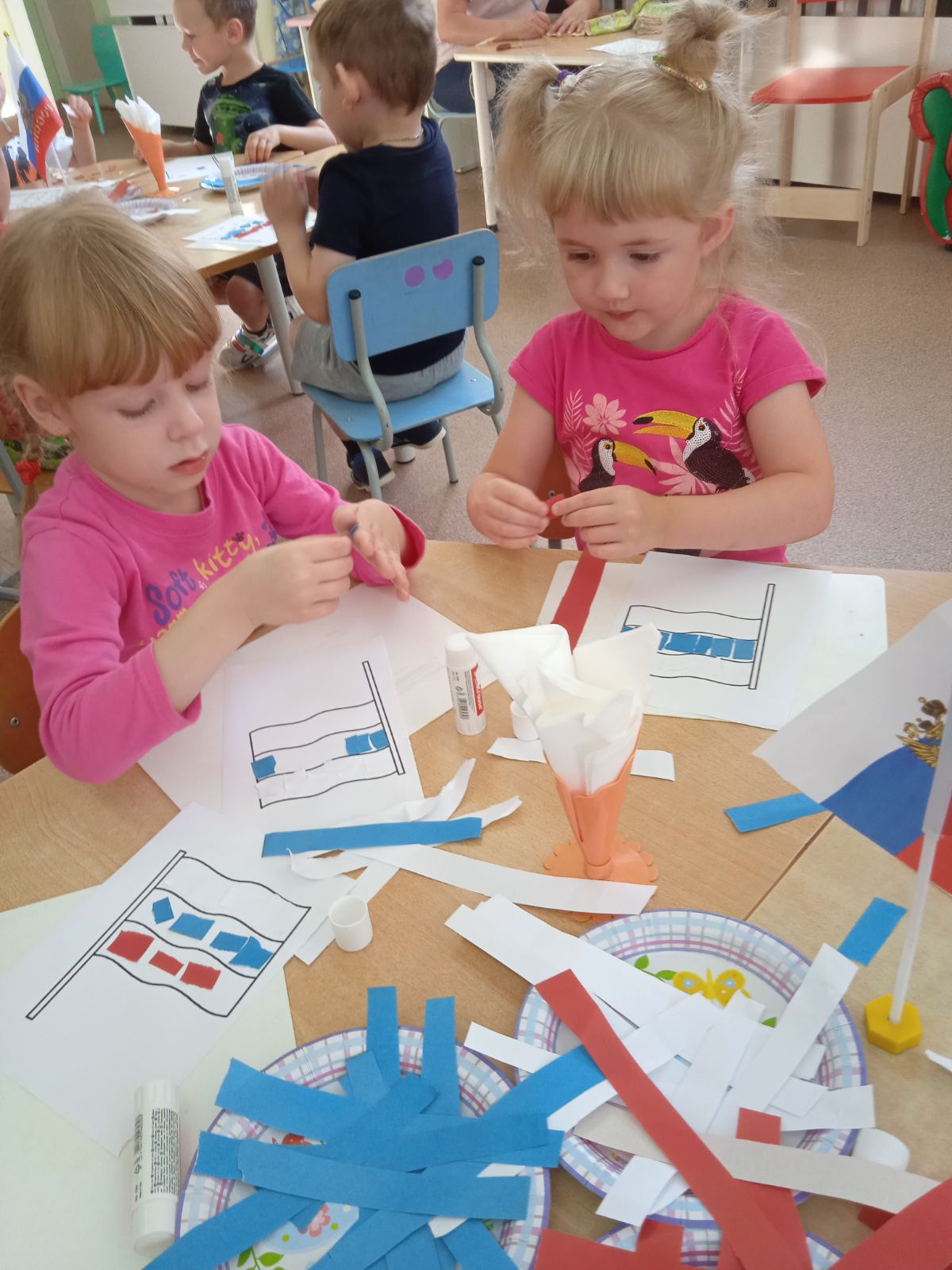 В процессе художественного творчества воспитанники детского сада формировали представления о флаге, что означает триколор.