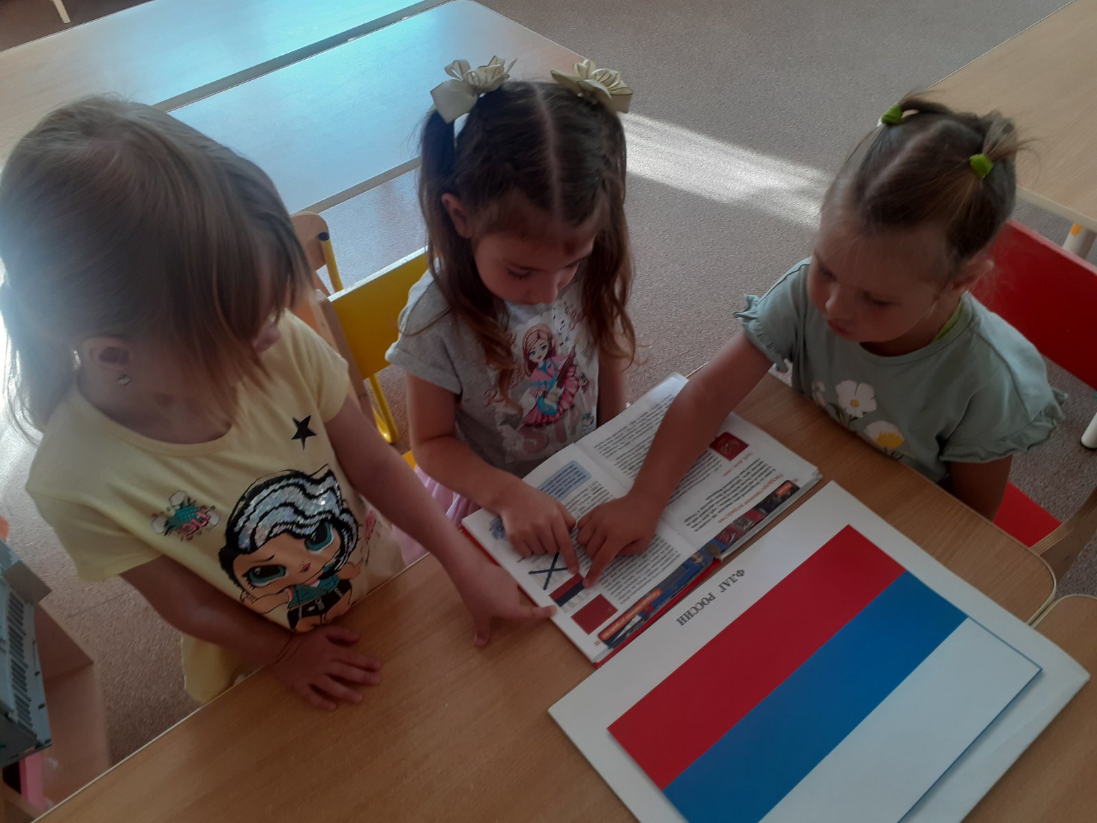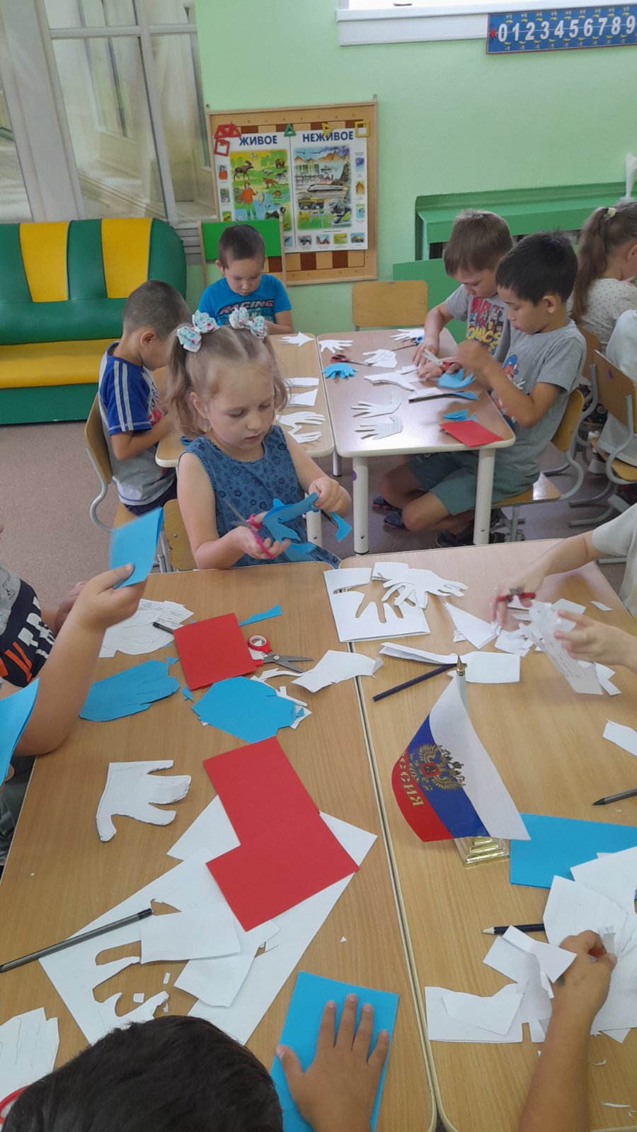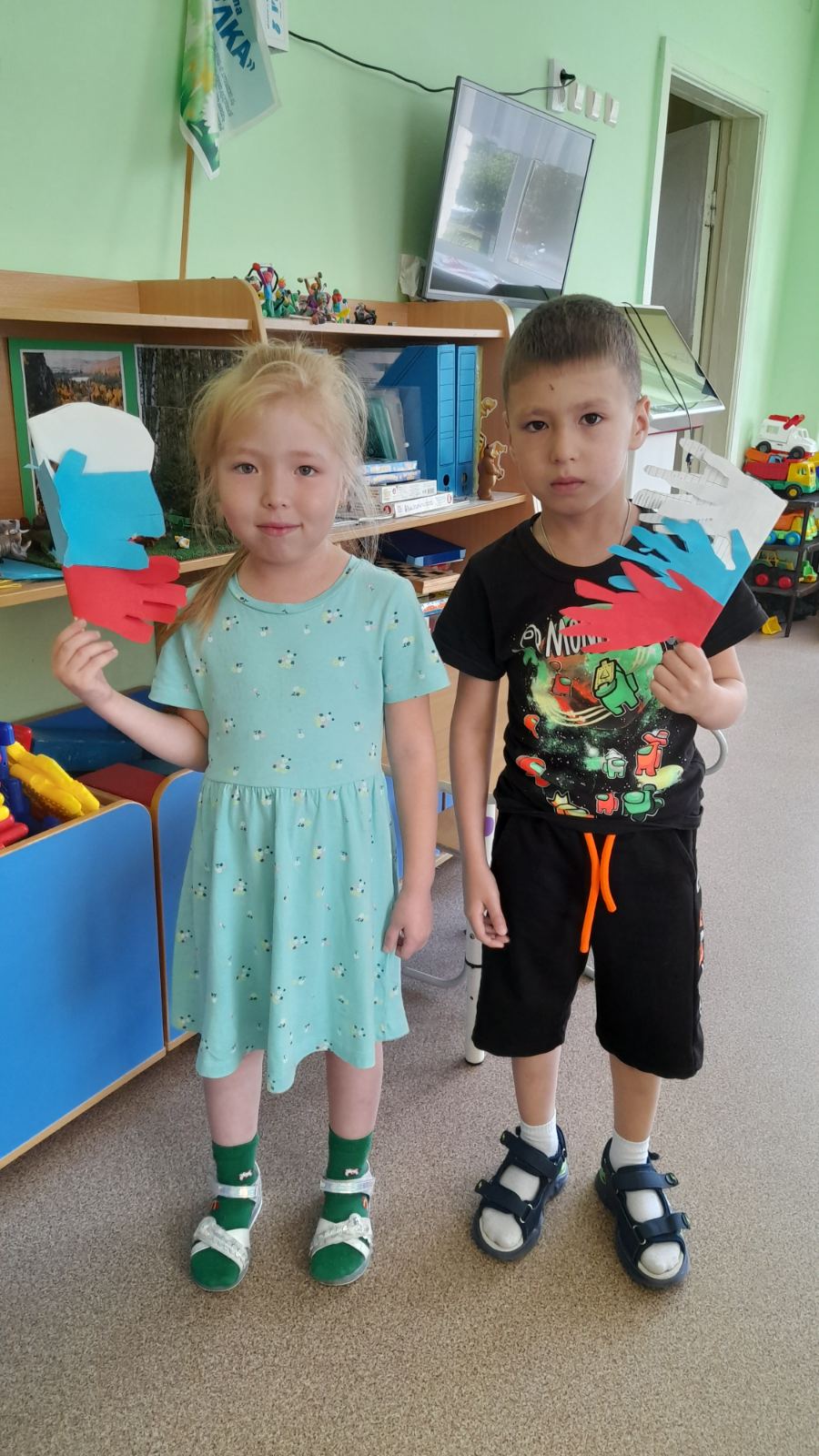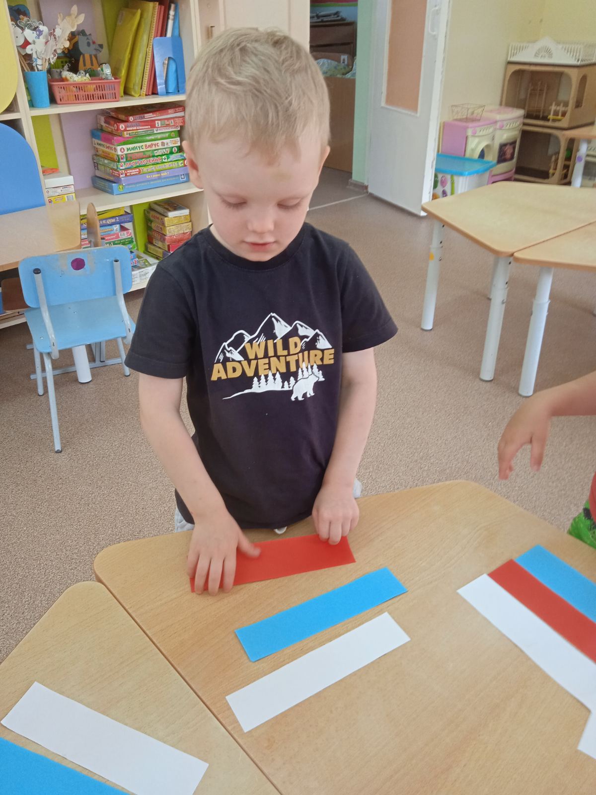 В процессе художественного творчества воспитанники детского сада формировали представления о флаге, что означает триколор.