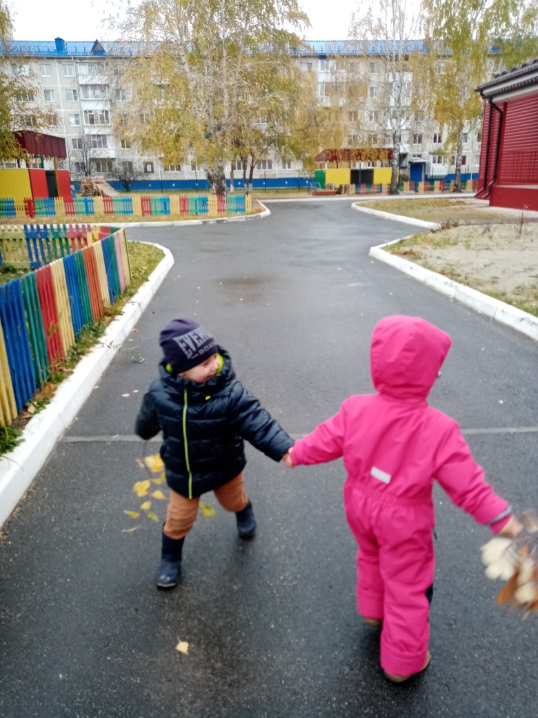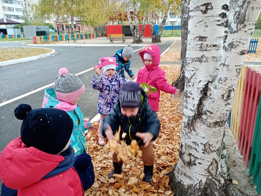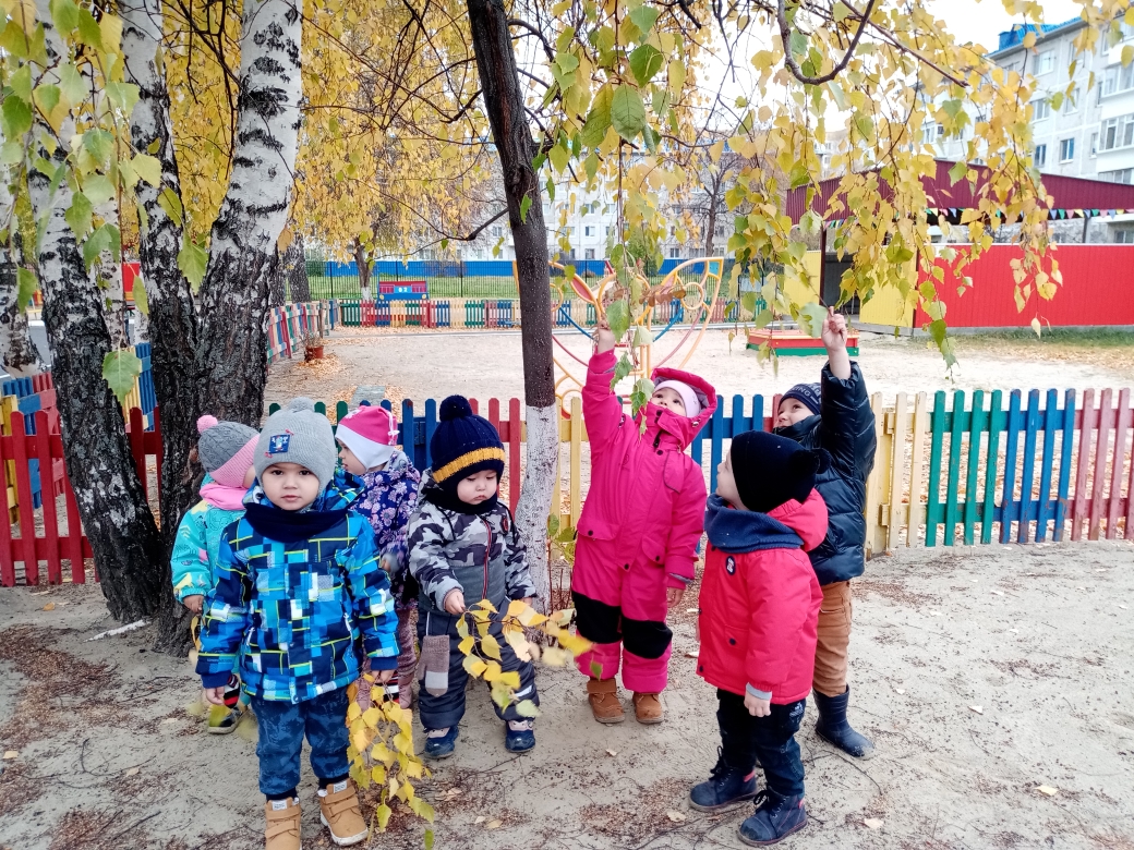 Ребята группы"Ромашка" любят гулять среди разноцветных деревьев и кустарников, когда всё вокруг так красочно и ярко. Под ногами весело шуршат разноцветные листья.
