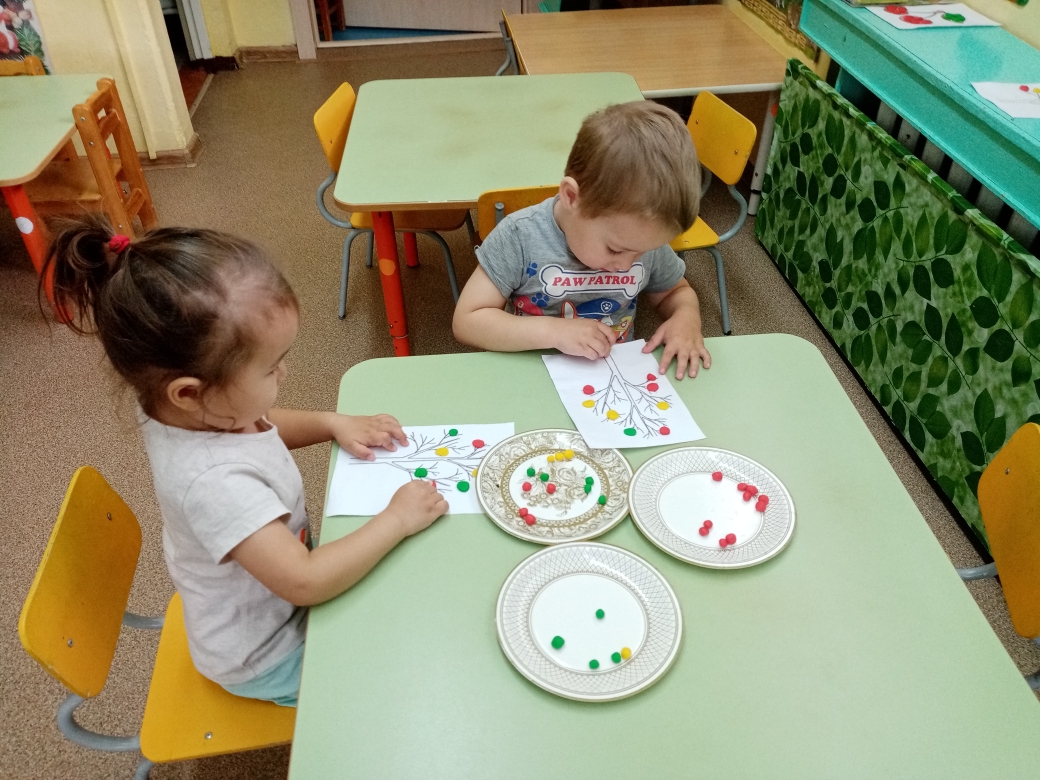Свои впечатления малыши отразили в коллективной творческой работе «Разноцветные листочки». Вот какие работы у нас получились.