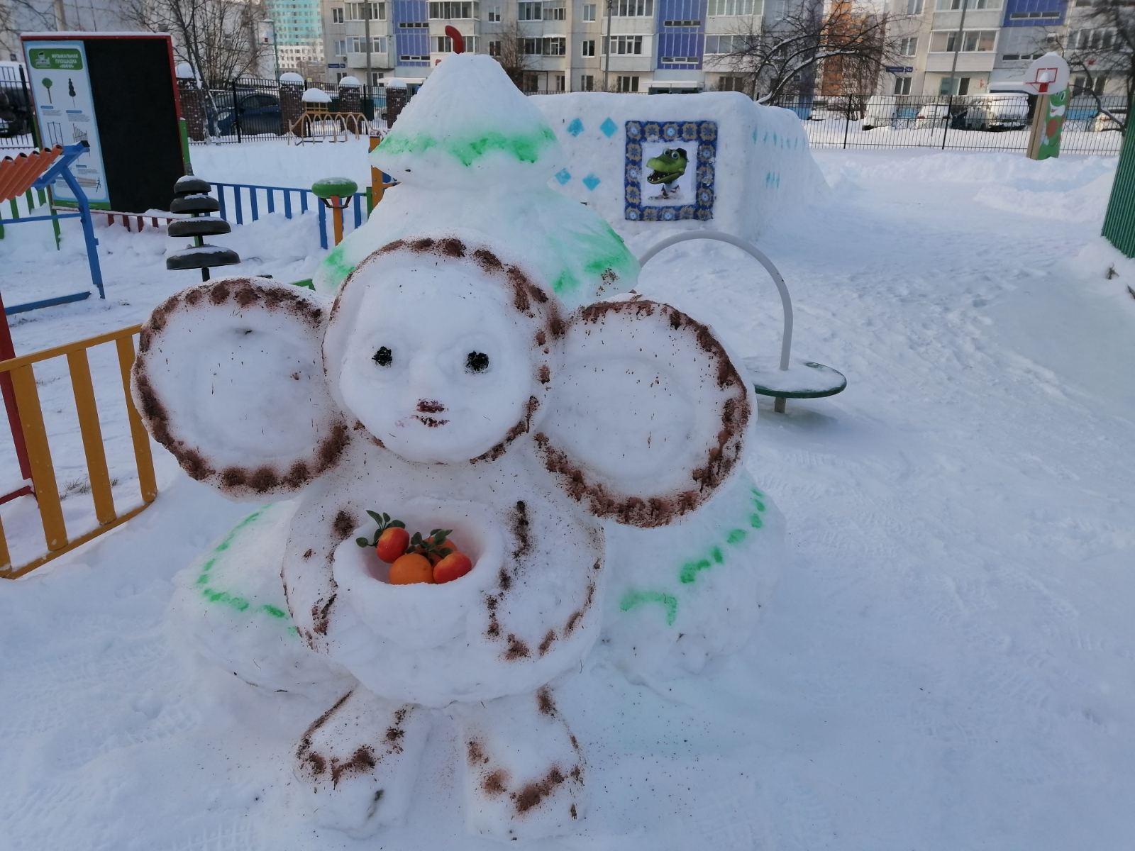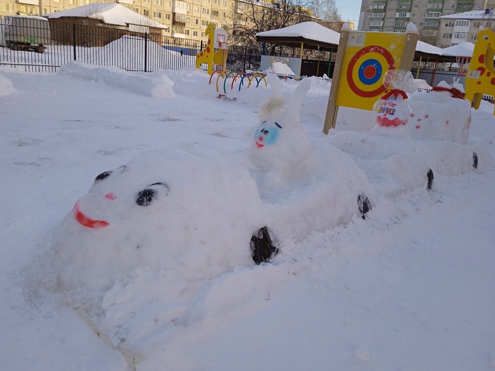 Снежные фигуры украшают участки детского сада, вызывая у ребят положительный эмоциональный настрой, желание идти на прогулку, чтобы навестить своих сказочных героев. Снежные фигуры поднимают детям настроение, позволяют вдоволь насладиться снежными забавами