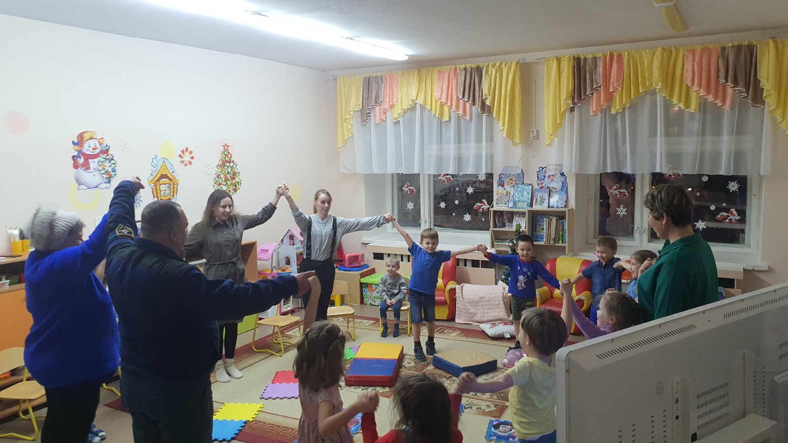 Маяки, домики и человечки на прищепках, шары и сосульки… У детей была возможность не только слушать, но и рассмотреть, потрогать, окунуться в историю. Для детей это было настоящее Со-бытие, которое позволило создать условия для формирования и развития духовно-нравственных ориентиров через семейные традиции и преемственность поколений.