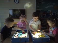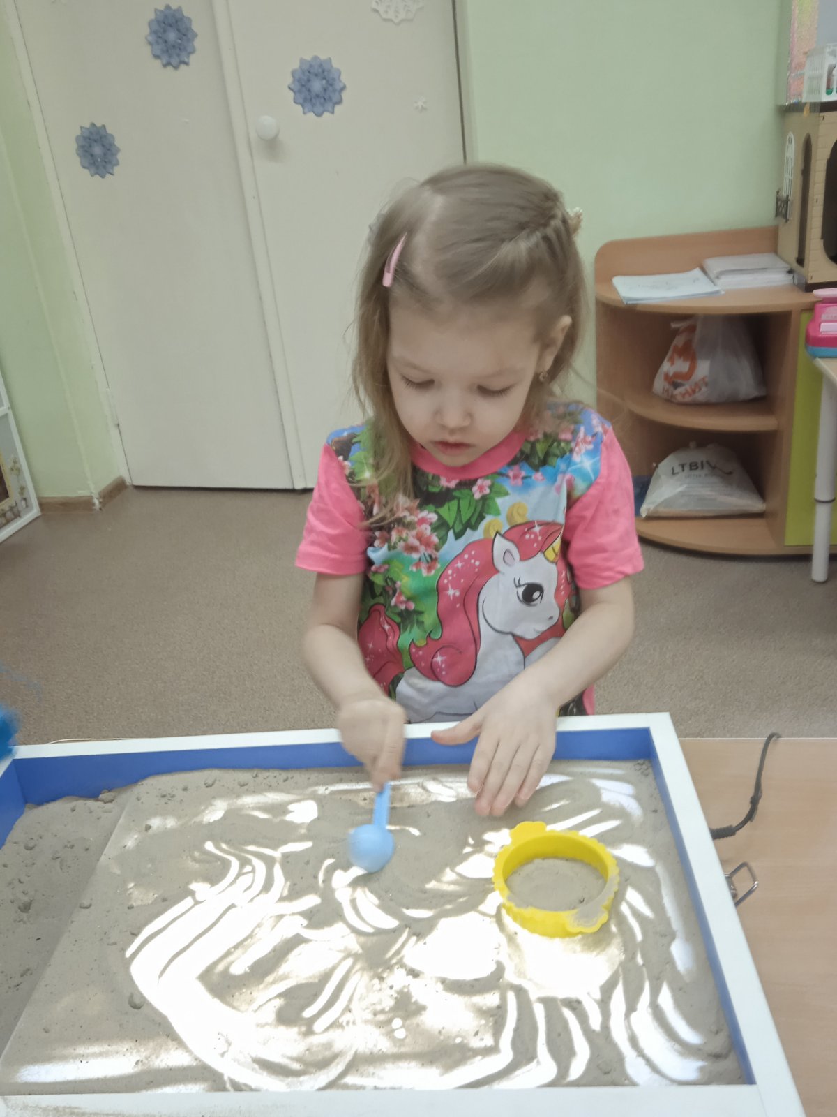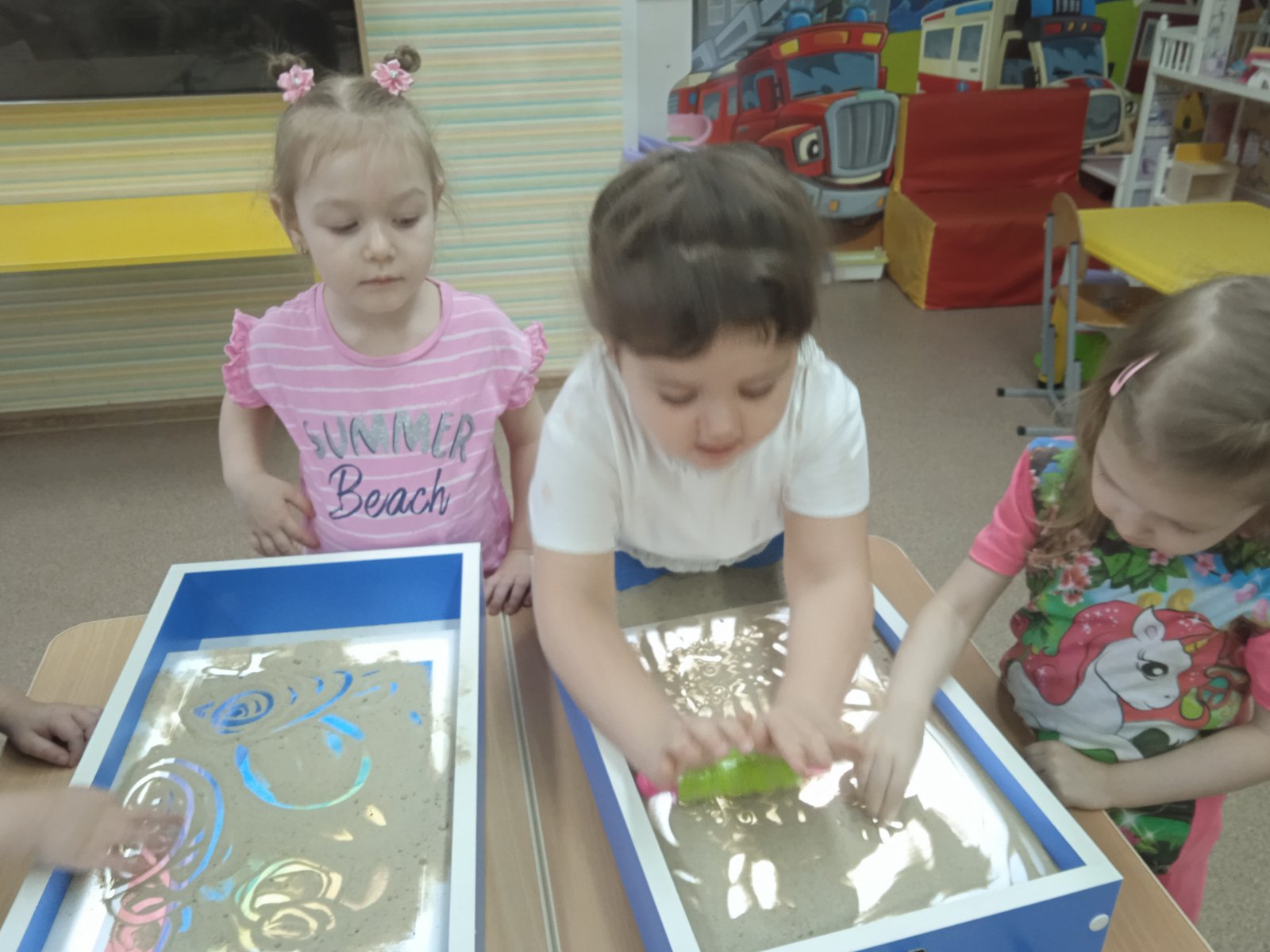 Таким образом, занимаясь рисованием песком, ребята из группы «Дюймовочка» не только овладевают практическими навыками и осуществляют творческие замыслы, но и расширяют кругозор, развивают художественный вкус, приобретают способность находить красоту в обыденном, учатся творчески мыслить.