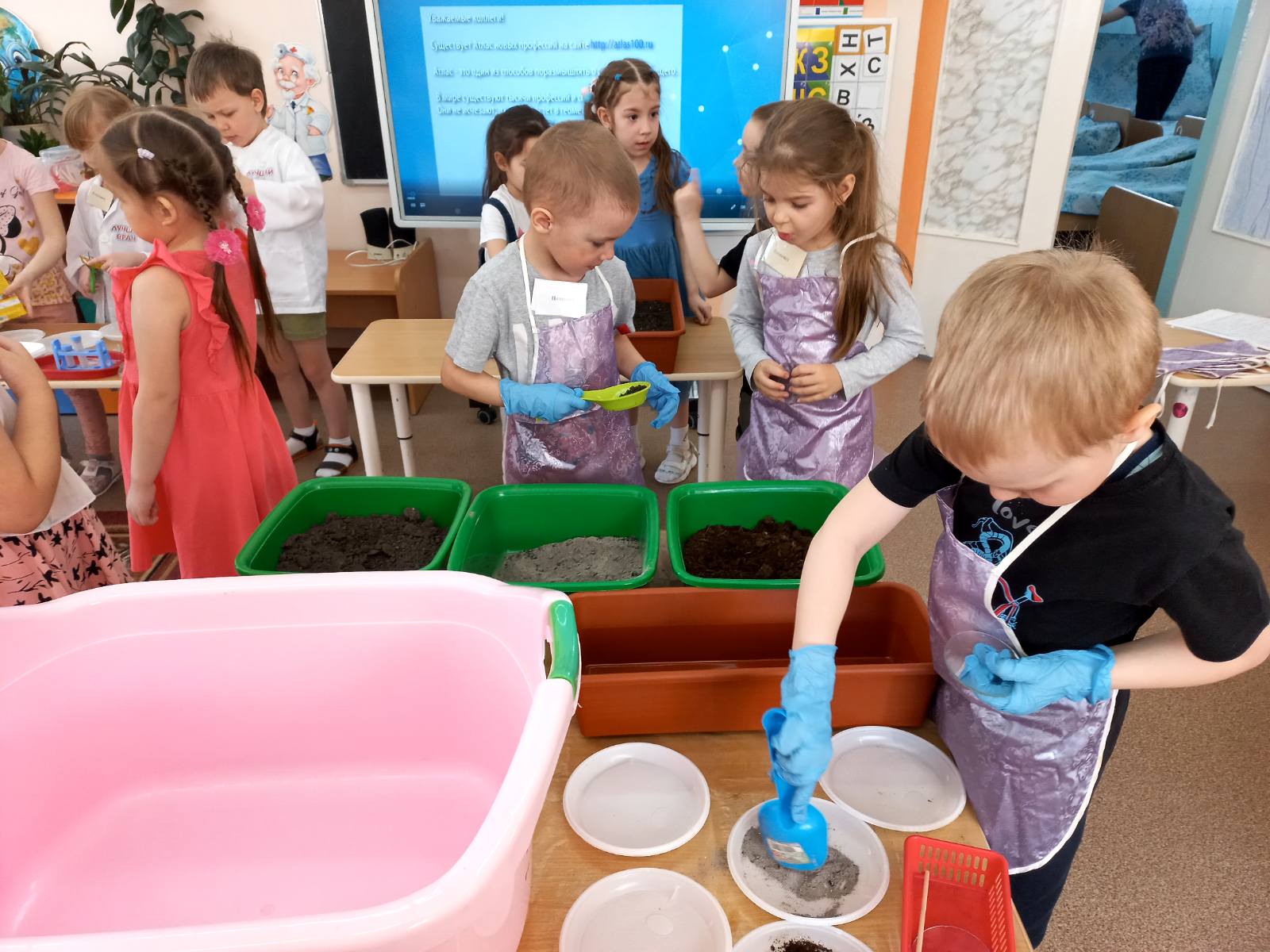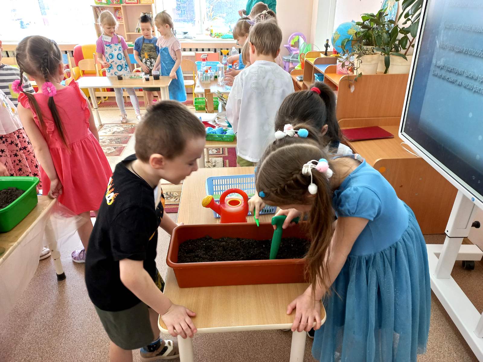 В ходе деятельности по посадке растений каждая группа выполняла сою работу, дети помогали друг другу – почвоведы готовить грунт для рассады, мелиораторы фильтровать воду, агротехники осваивали новые «сеялки » для семян, а селекционеры ответственно отбирали семена.