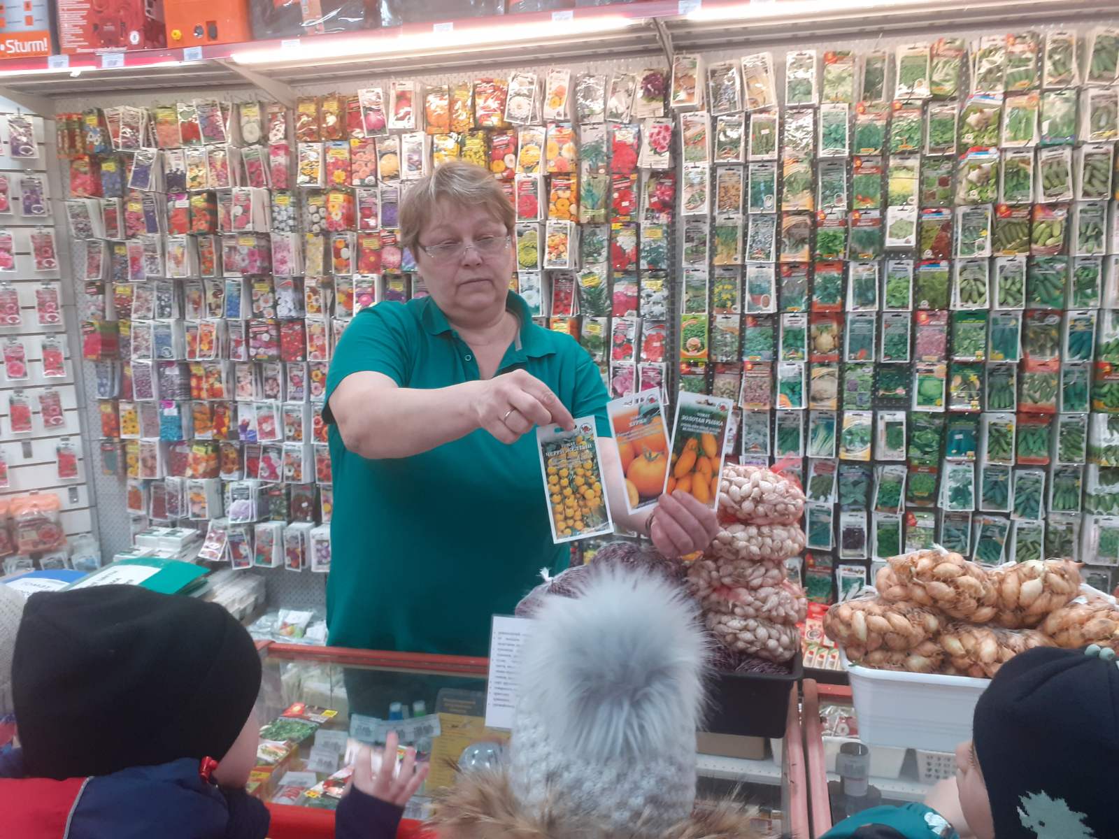 Распределив роли для труда, нам необходимы были материалы, поэтому мы отправились на экскурсию в «Садовый центр», где мы узнали много нового: растения можно выращивать не только семенами, но и луковичкой и черенками, есть необычный грунт в брикетах, существует огромное количество различных удобрений и т.д.