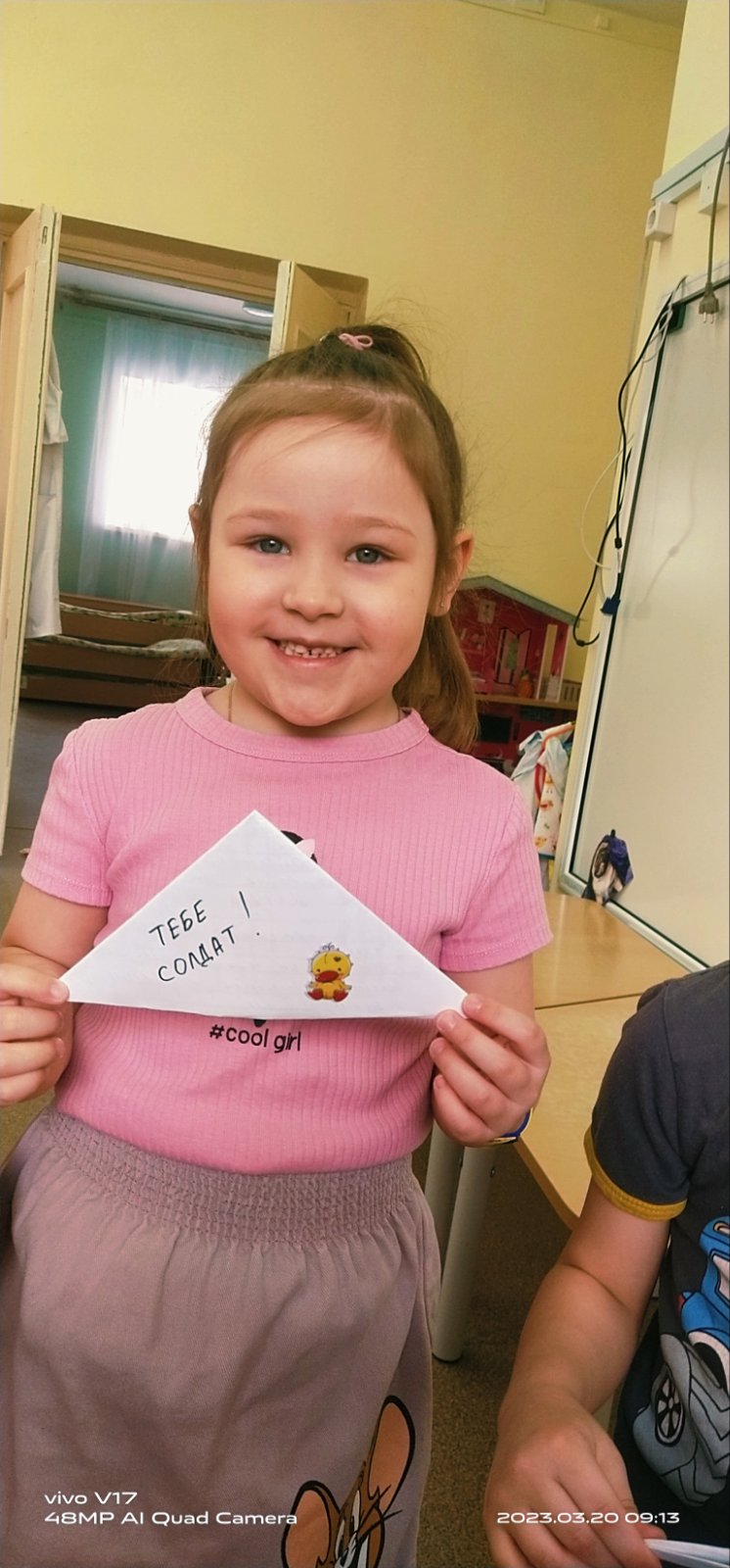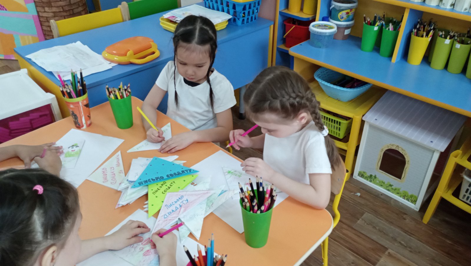 Сегодня ребята нашего детского сада пишут письма российским солдатам. Ребята знают, что письма согревают сердца всех солдат и им очень важна поддержка из дома. Ведь они днем и ночью они несут свою нелегкую службу, выполняя военную операцию на Украине.
