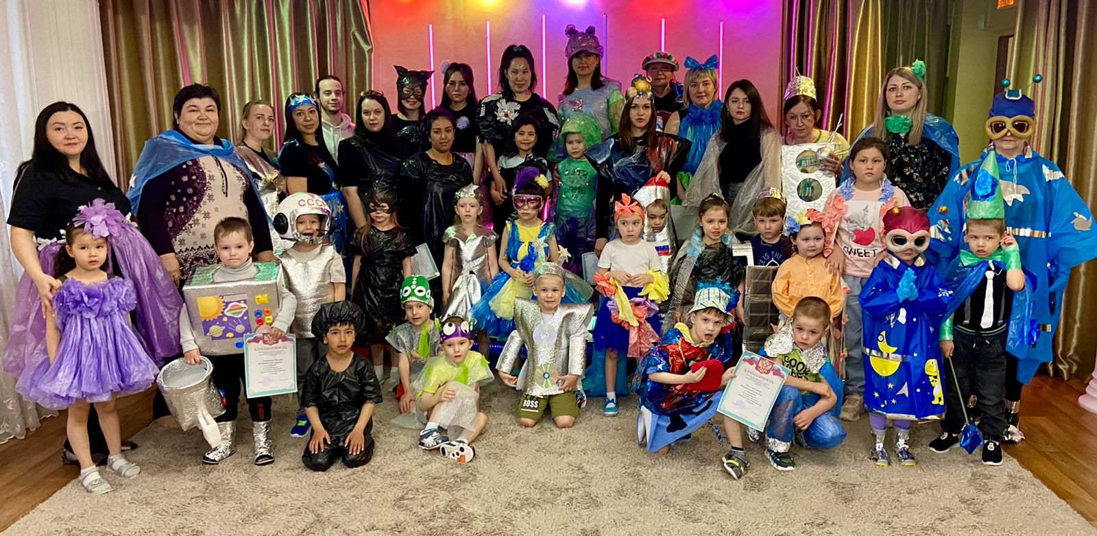 На наш конкурс, прибыли представители гламурной моды, из мира "космоса" и экологии, наши мини-модели с мамами, папами, бабушками, сестрами и братьями!