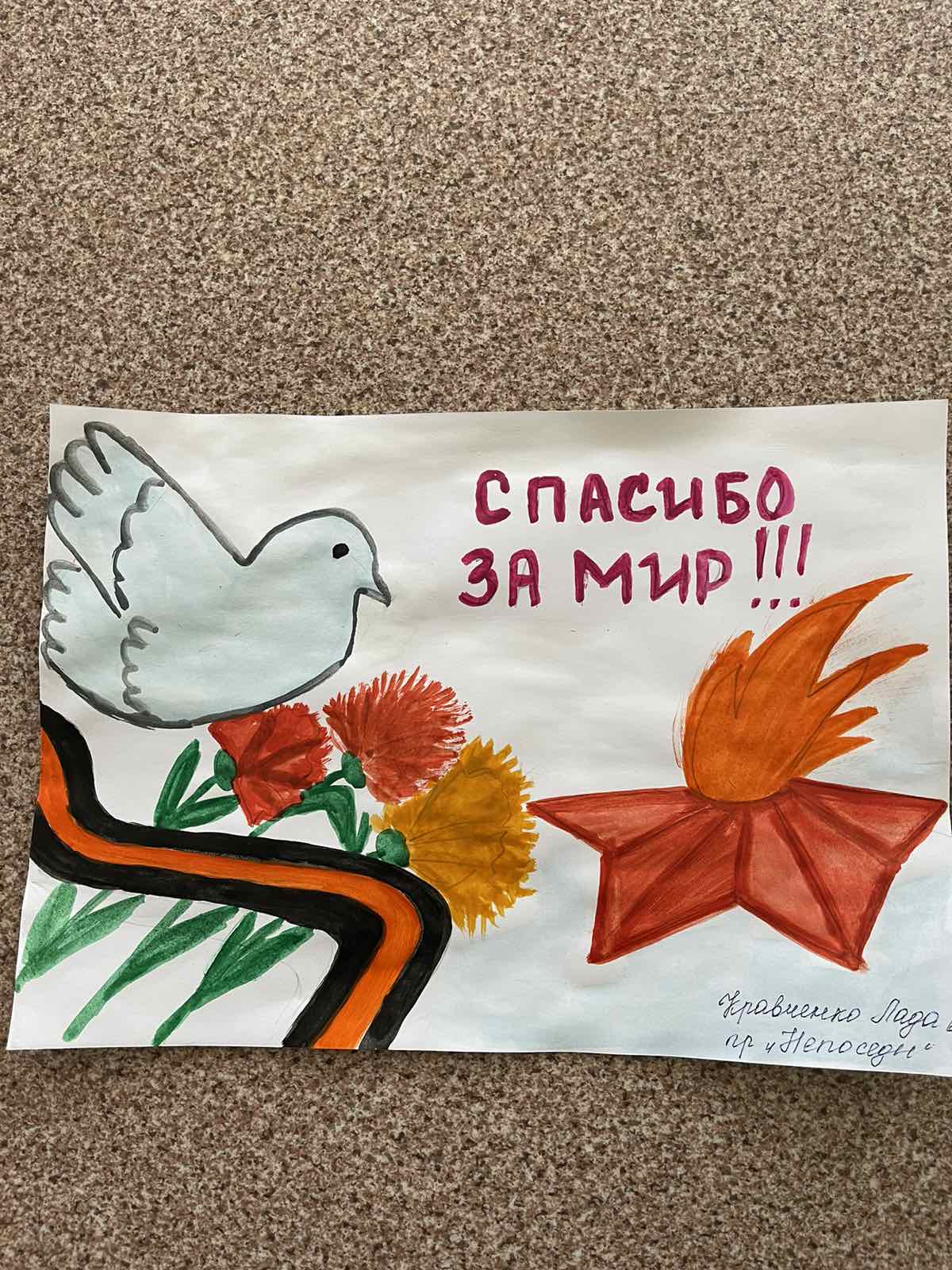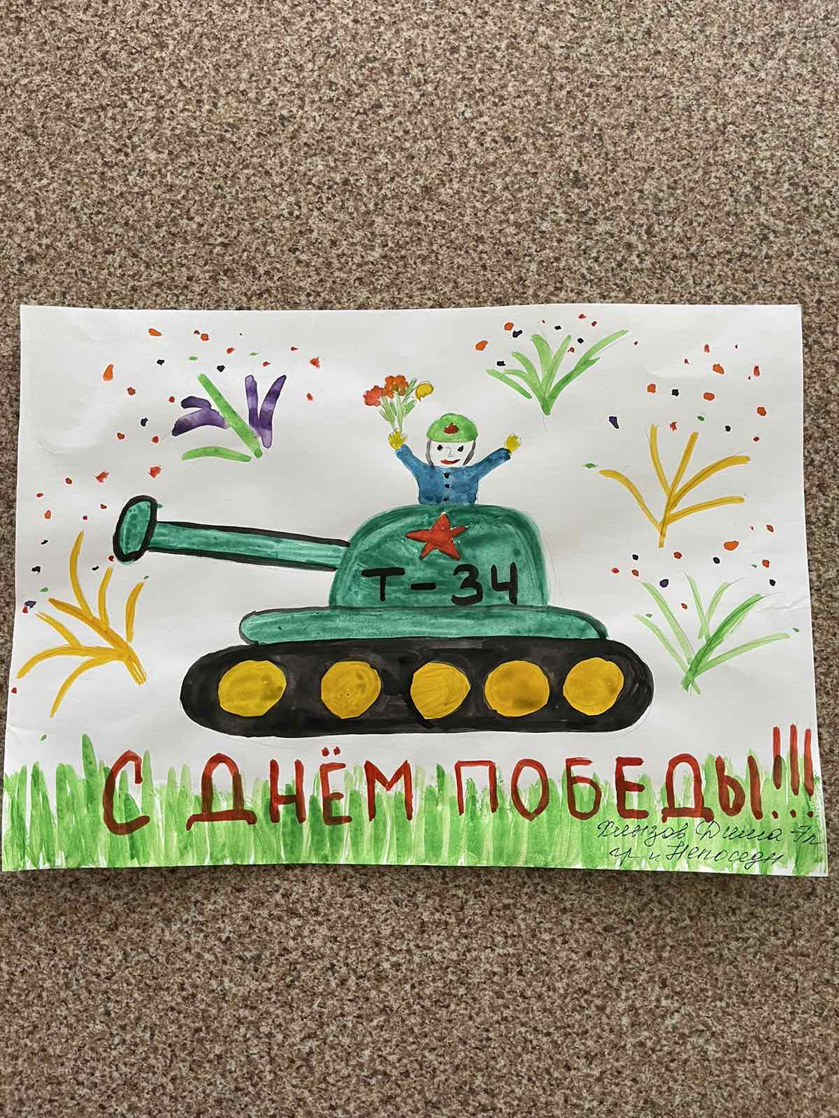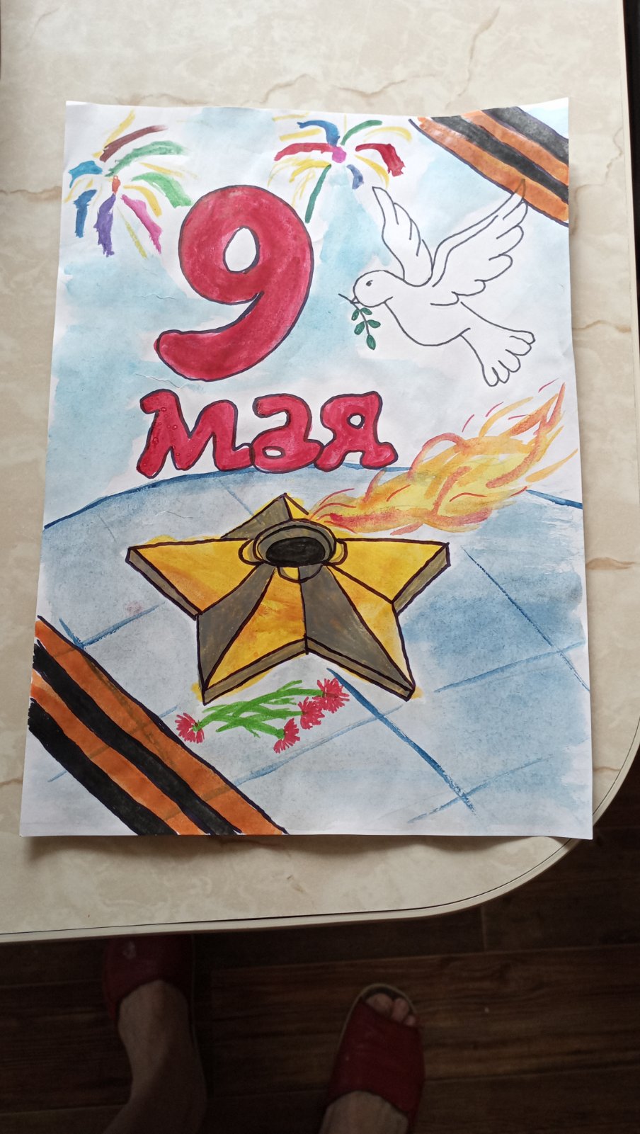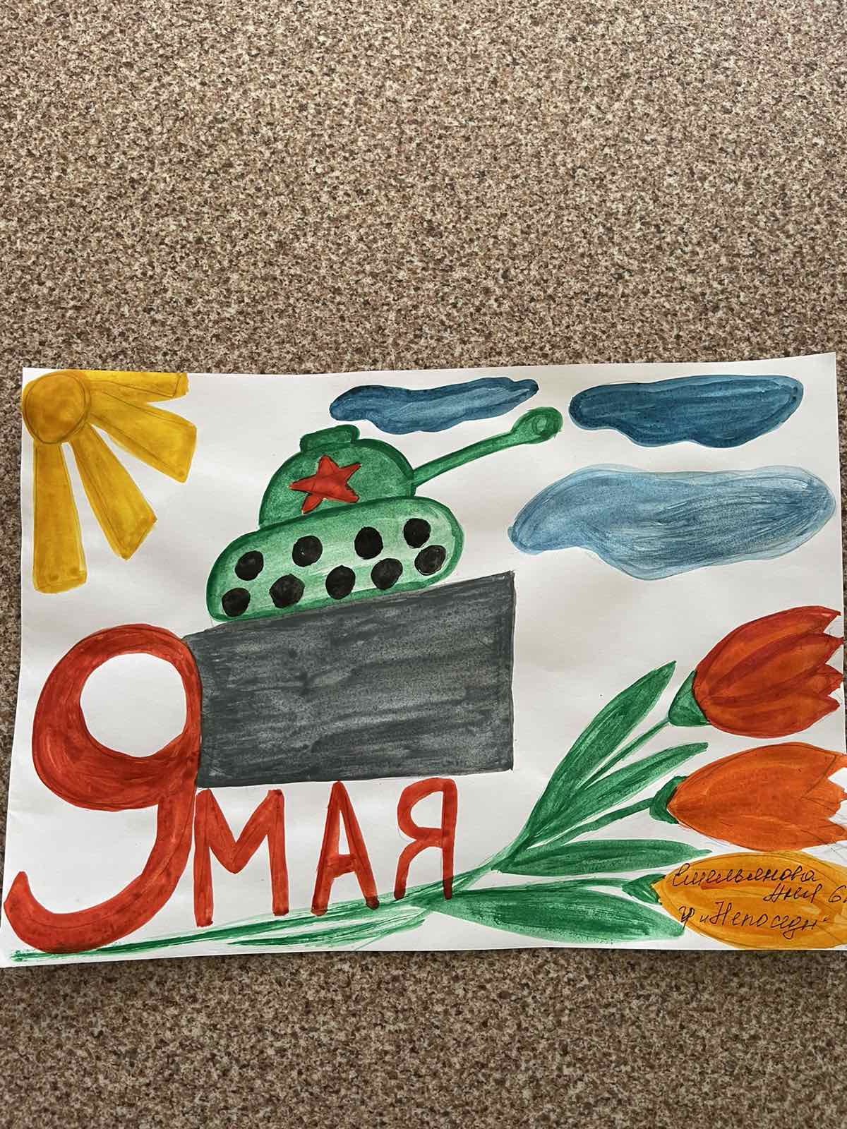 Принимая участие в данной акции, ребята совместно с родителями нарисовали яркие, красочные рисунки, посвященные Дню Победы.