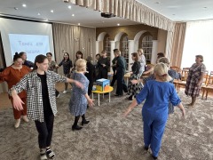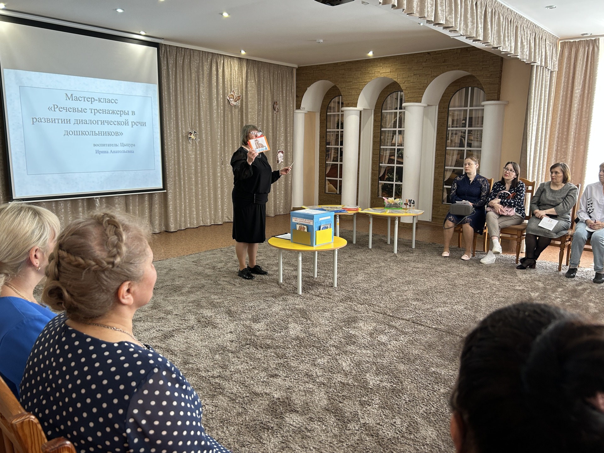 Участвуя в мастер-классе «Речевые тренажеры в развитии диалогической речи дошкольников», его провела воспитатель Цыцура И.А., педагоги разыгрывали мини-диалоги, читали стихи по ролям, упражнялись в умении взаимодействовать в подвижной игре в соответствии выбранной роли, проявили индивидуальность и творчество при озвучивании сказки.