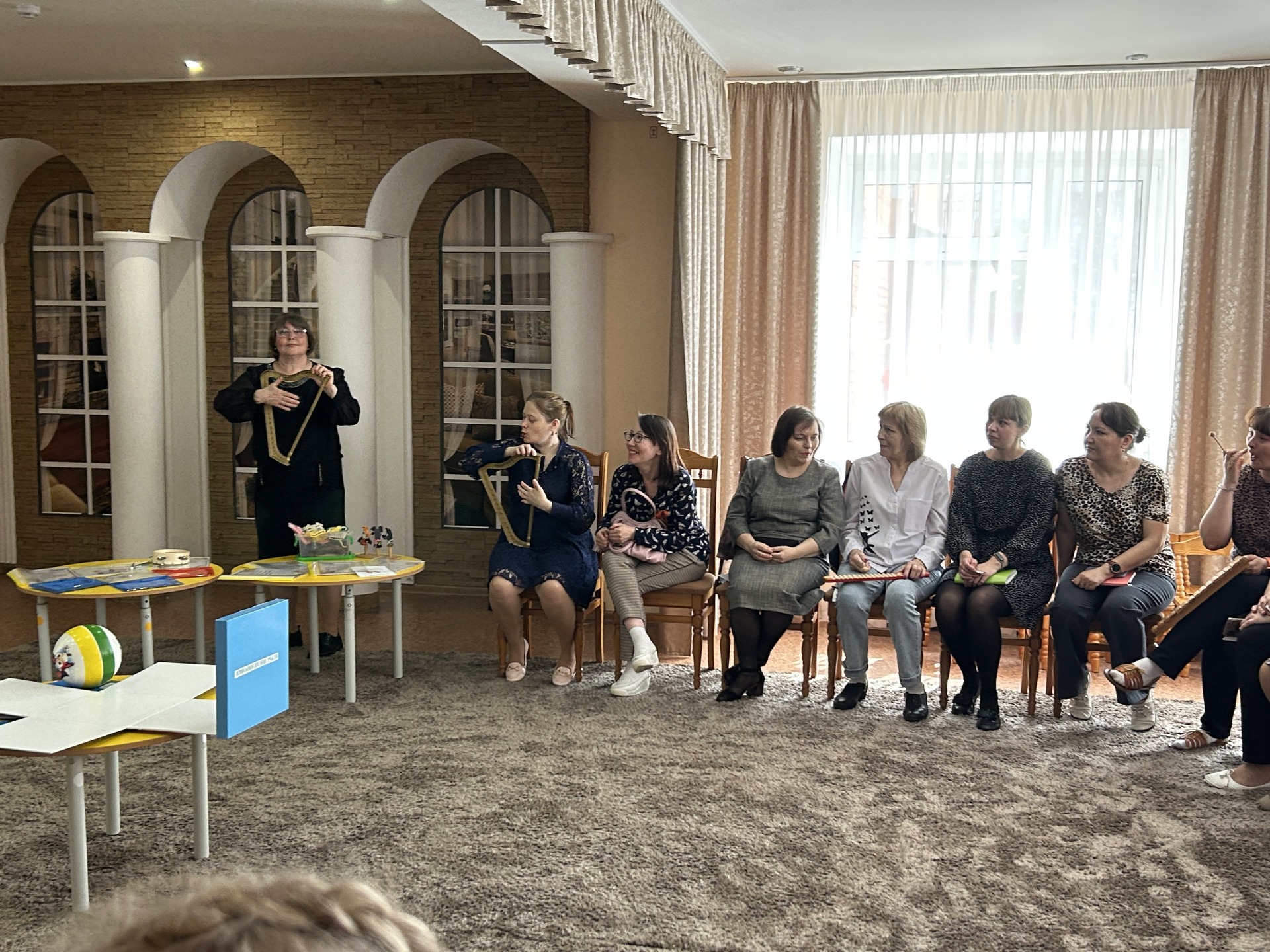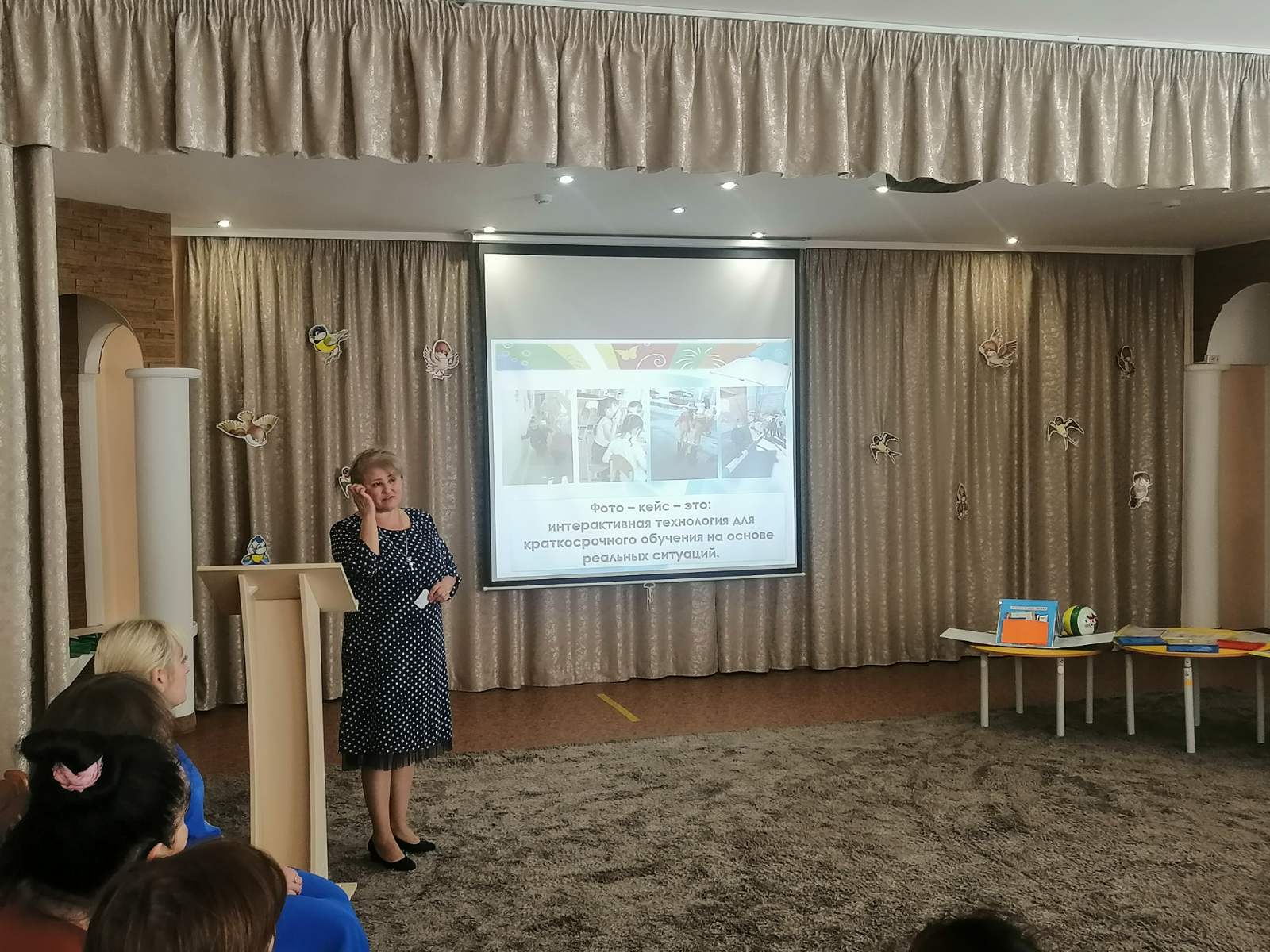 Воспитатель Айтнякова Э.С. поделилась опытом работы по использованию кейс-технологии в развитии диалогической речи детей среднего дошкольного возраста». Методическая копилка наших гостей наполнилась полезными идеями, играми и приемами, ведь они оценили опыт работы наших педагогов очень позитивно.
