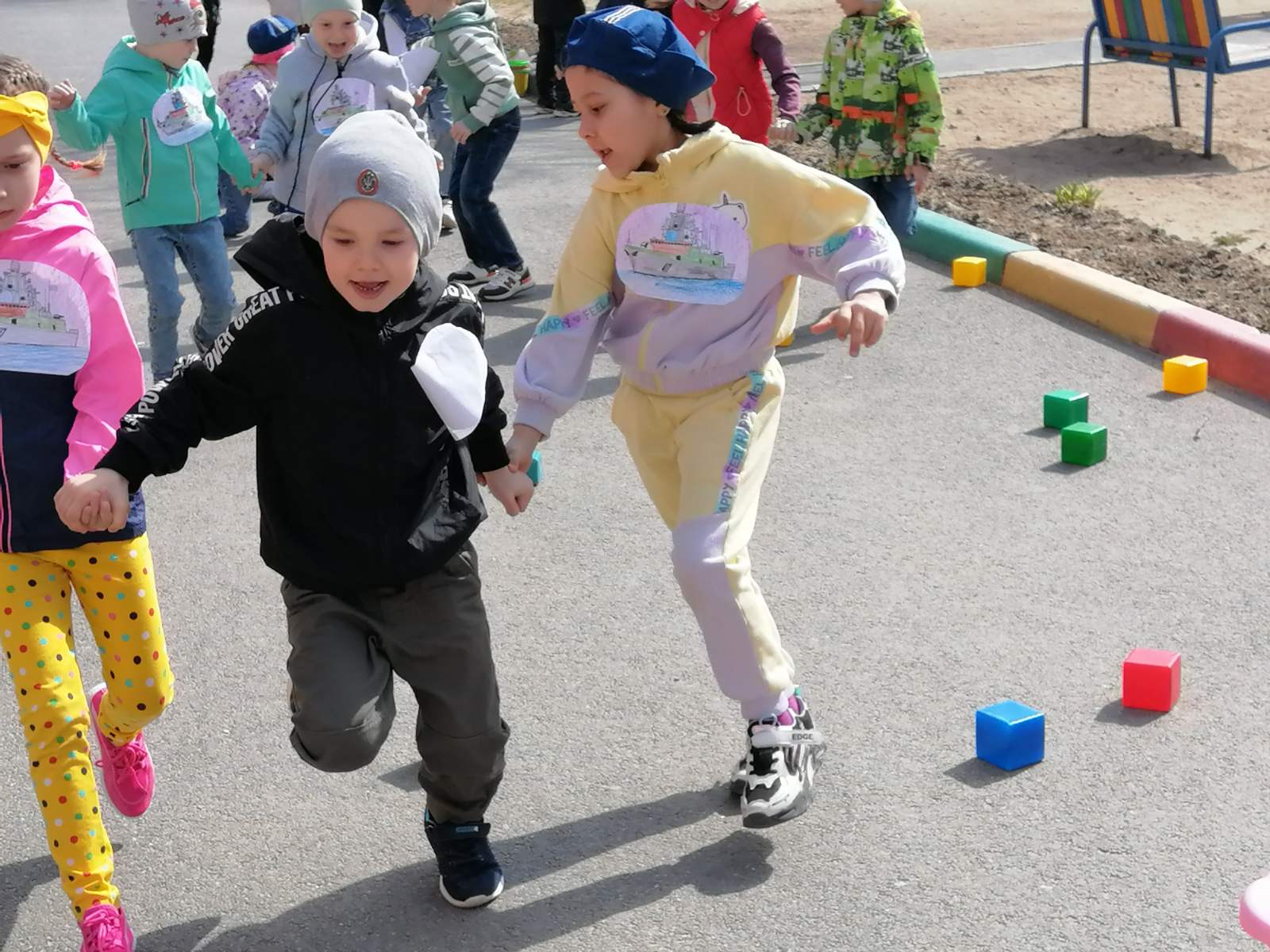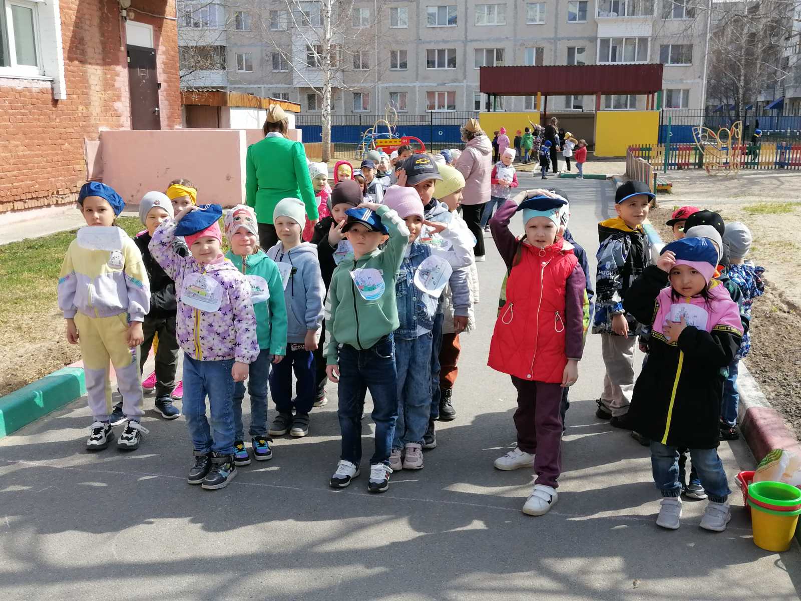 Для старших и подготовительных групп были организованы испытания по роду войск Российской армии: Летчики, Танкисты, Моряки, Артиллеристы и Разведчики. Ребята немного волновались, но разделились на взводы без споров. После того как все заняли свои позиции, военные учения в честь Знамени Победы начались.