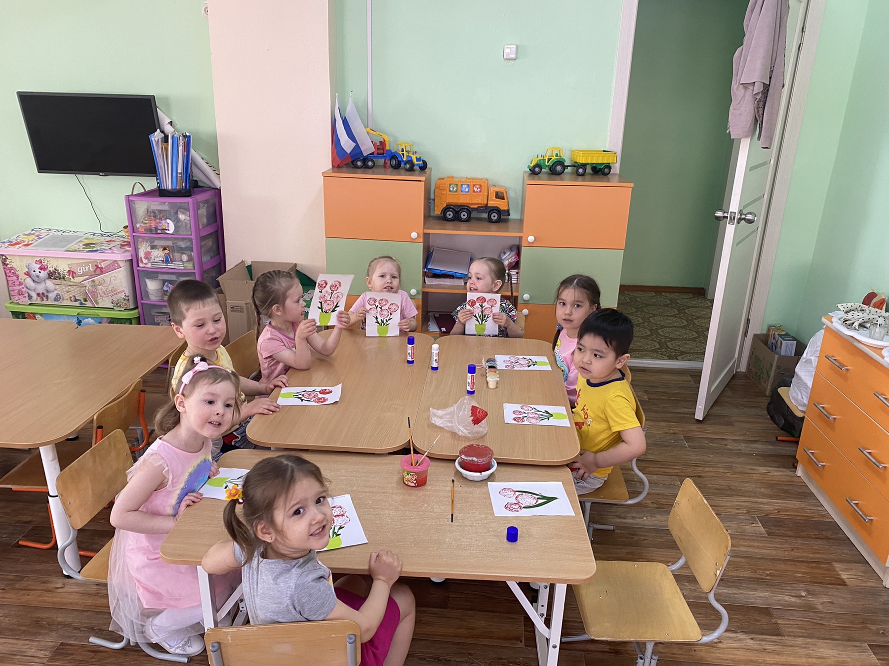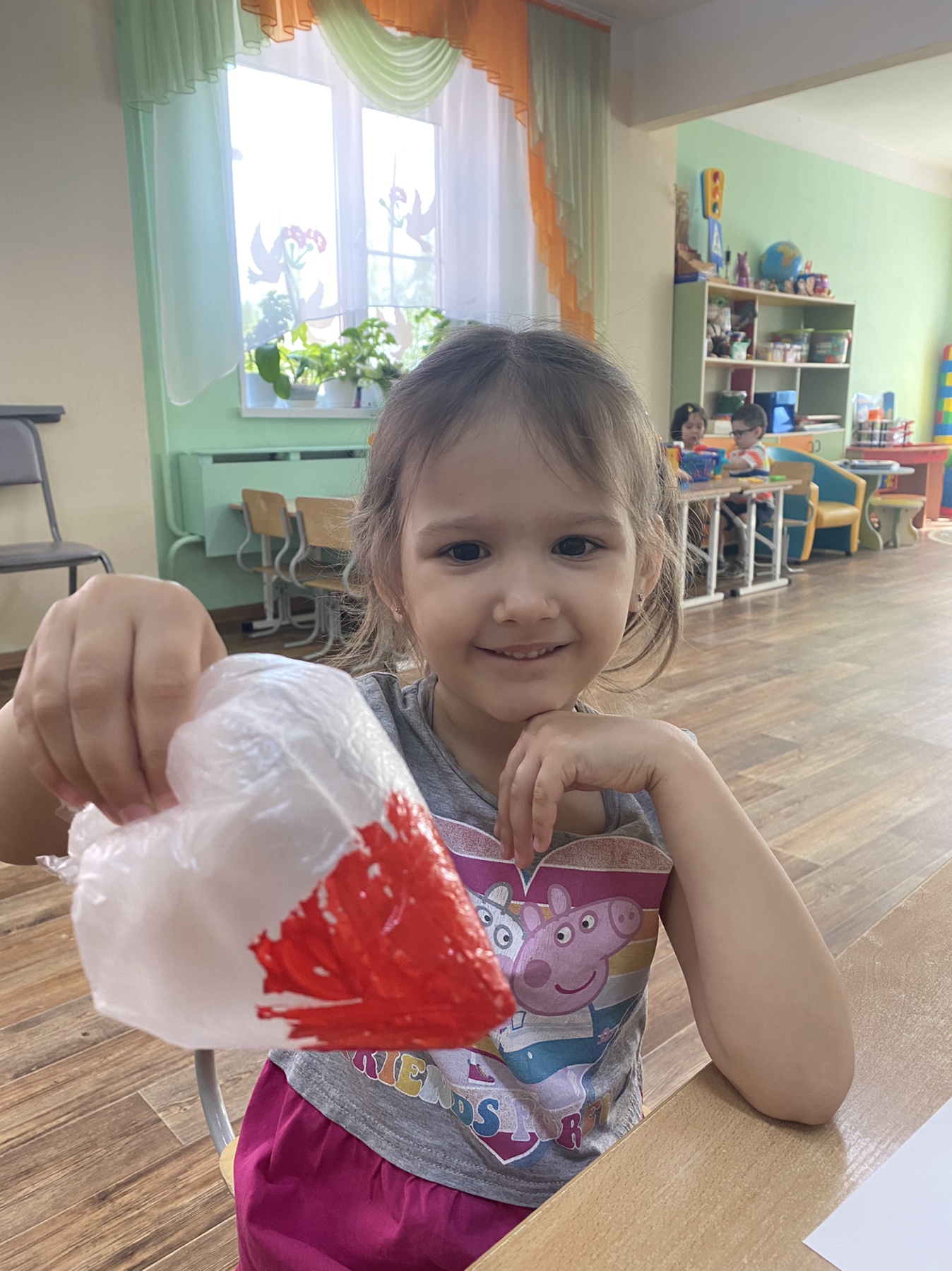 Сегодня они рисовали «Букет красных роз» в технике рисования полиэтиленовым пакетом.