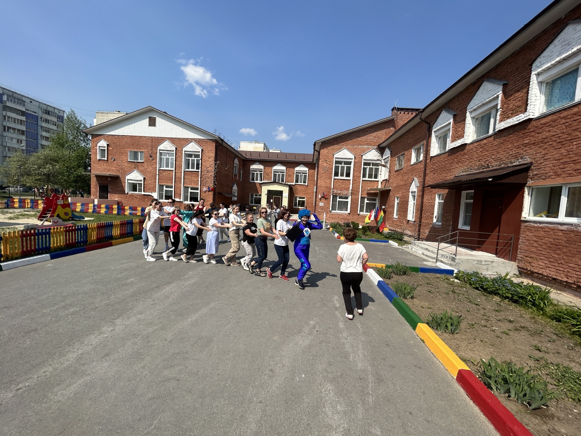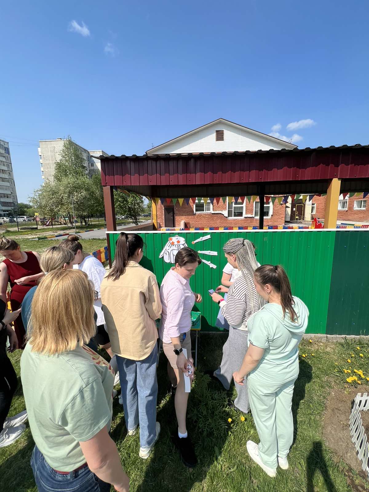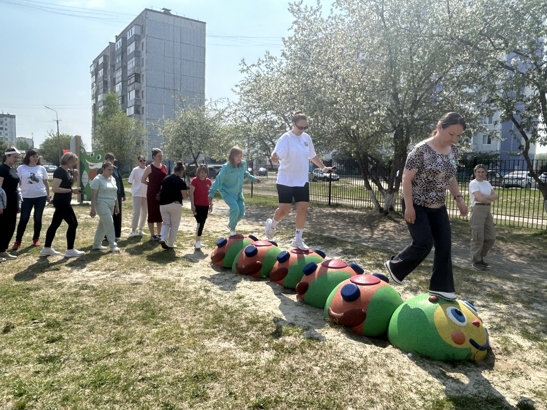 Суючева Хадича Есажановна пригласила гостей принять участие в образовательном терренкуре «На лесной полянке», где они развивали органы дыхания во время дыхательных гимнастик между станциями, соотносили звучание музыкальных инструментов с движениями животных нашего леса, лазали по скалодрому, кормили белку, упражняясь в меткости и многое другое.