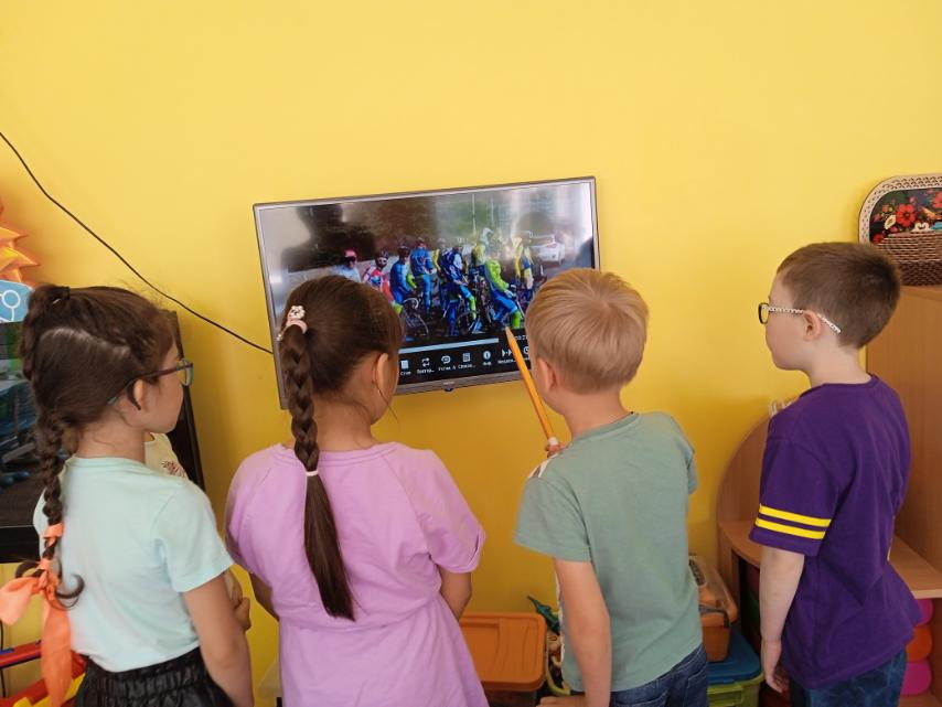 Мы с ребятами посмотрели фильм, узнали много интересного о велоспорте, о защитных снаряжениях велосипедиста, о пользе катания на велосипеде. Каждый ребёнок с охотой и восторгом рассказывал о своём двухколесном друге, ведь велосипедные прогулки оздоравливают, развивают двигательную активность, выносливость.