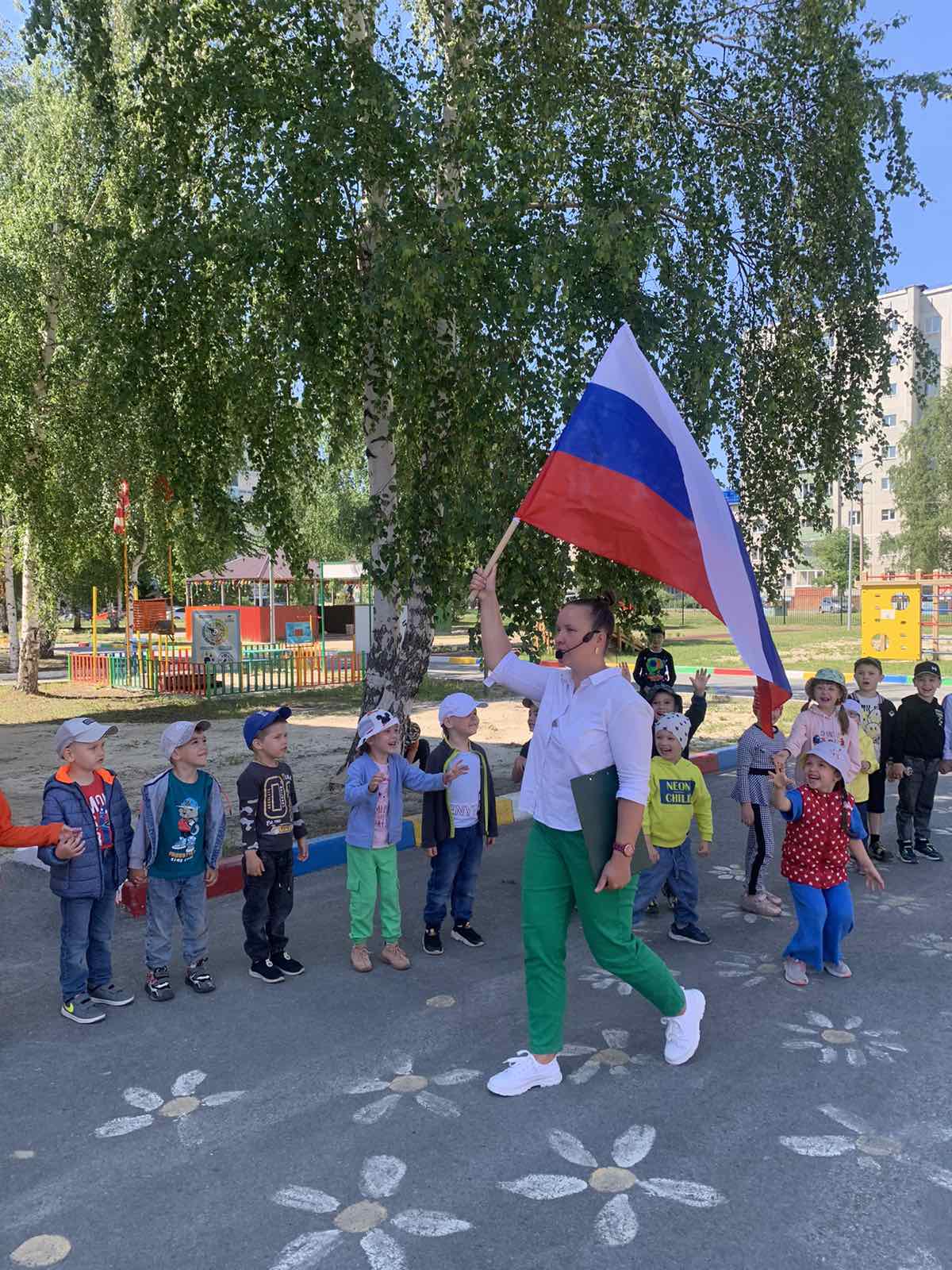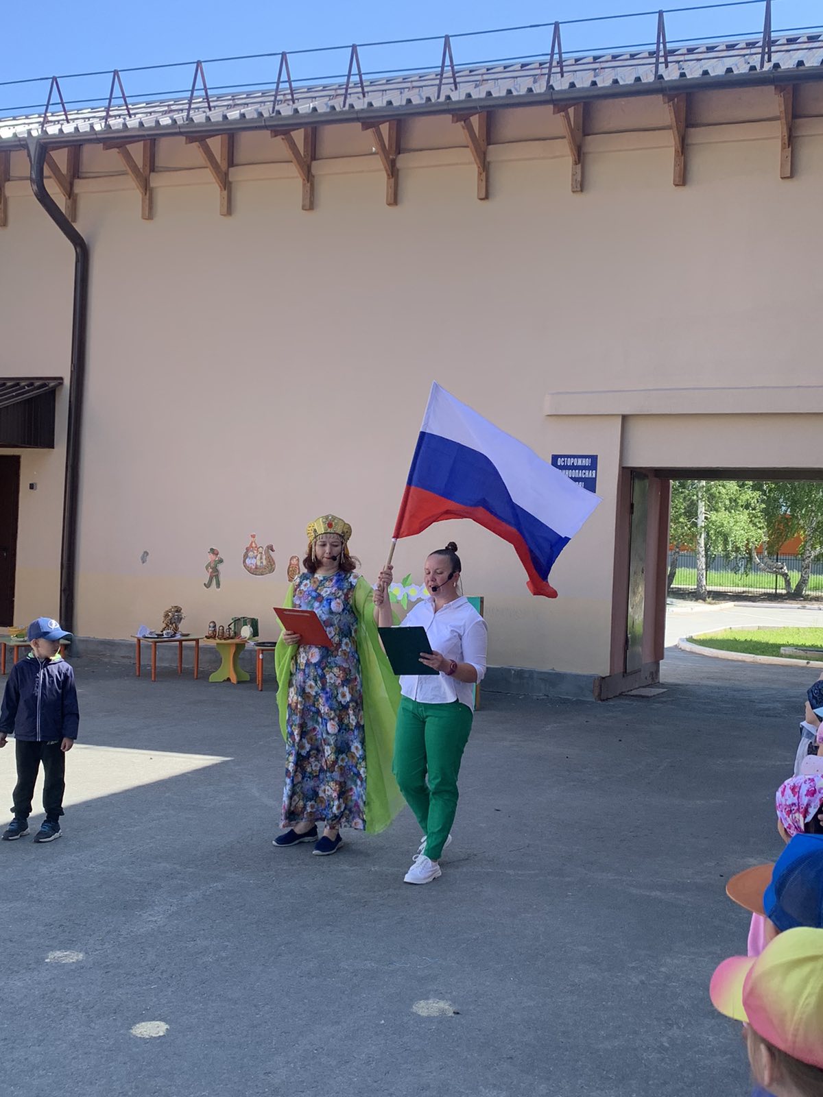 Праздник начался с флешмоба под музыку и слова Давида Тухманова и Роберта Рождественского «Я, ты, он, она, вместе-целая страна». Ребята вспомнили все символы России: флаг, гимн, герб и их функциональное назначение, а также уточнили, что означают цвета и образы государственных символов (орёл, всадник, дракон), прослушали гимн России, исполнили русские хороводы и спели песни про Родину.
