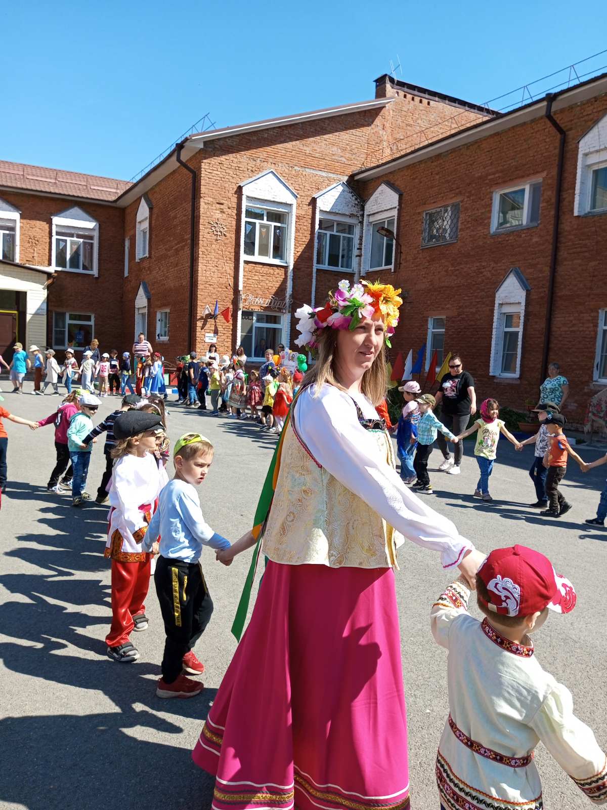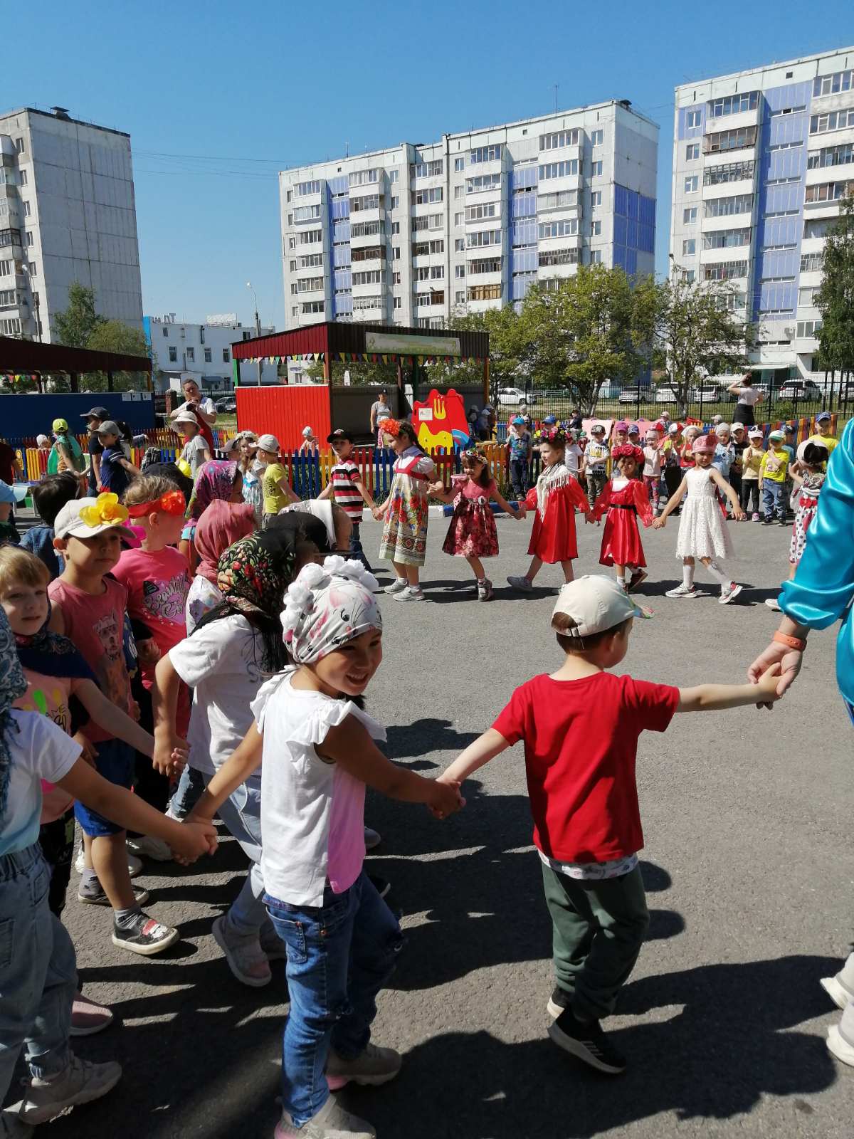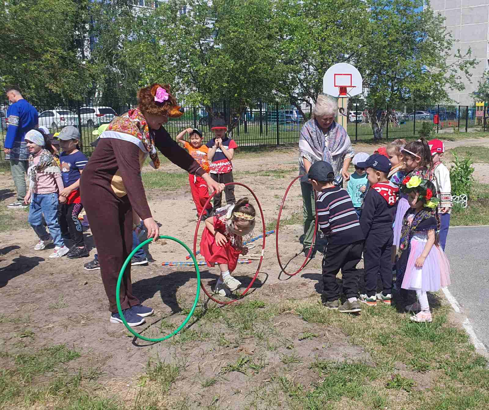 А в торговых рядах встречали детей «Русская матрёшка", веселый оркестр с частушки, народные промыслы, где можно слепить разные фигуркии раскрасить картинки разными росписи.