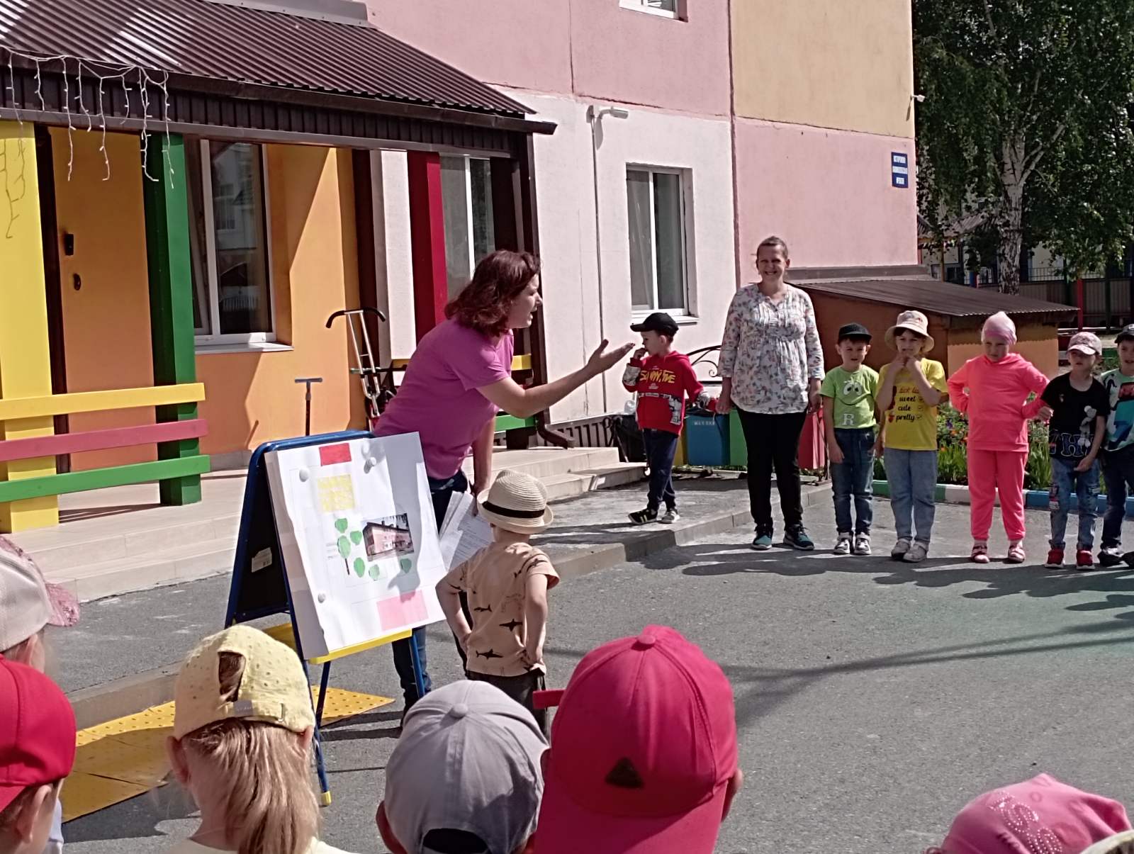 Наше путешествие началось с изучения карты местности нашего детского сада. Определив маршрут мы выдвинулись по станциям.