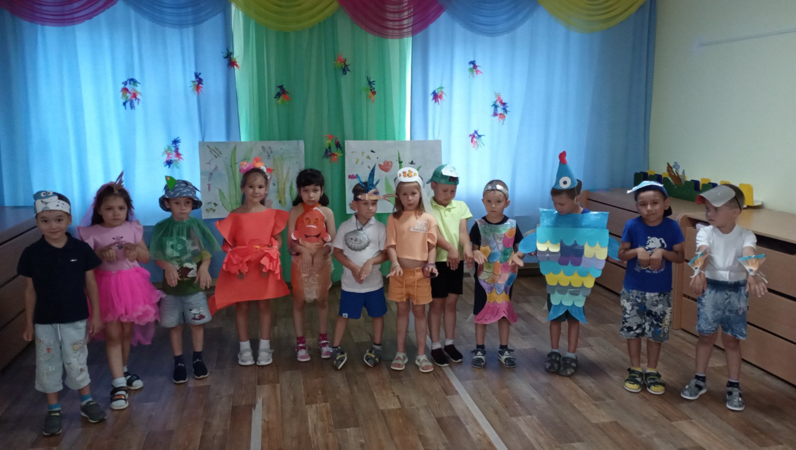 Нужно изготовить костюмы, да так, чтобы все узнали, что это рыбка или крабик, морской конёк или русалочка. Приготовление декораций-это тоже творческий процесс.