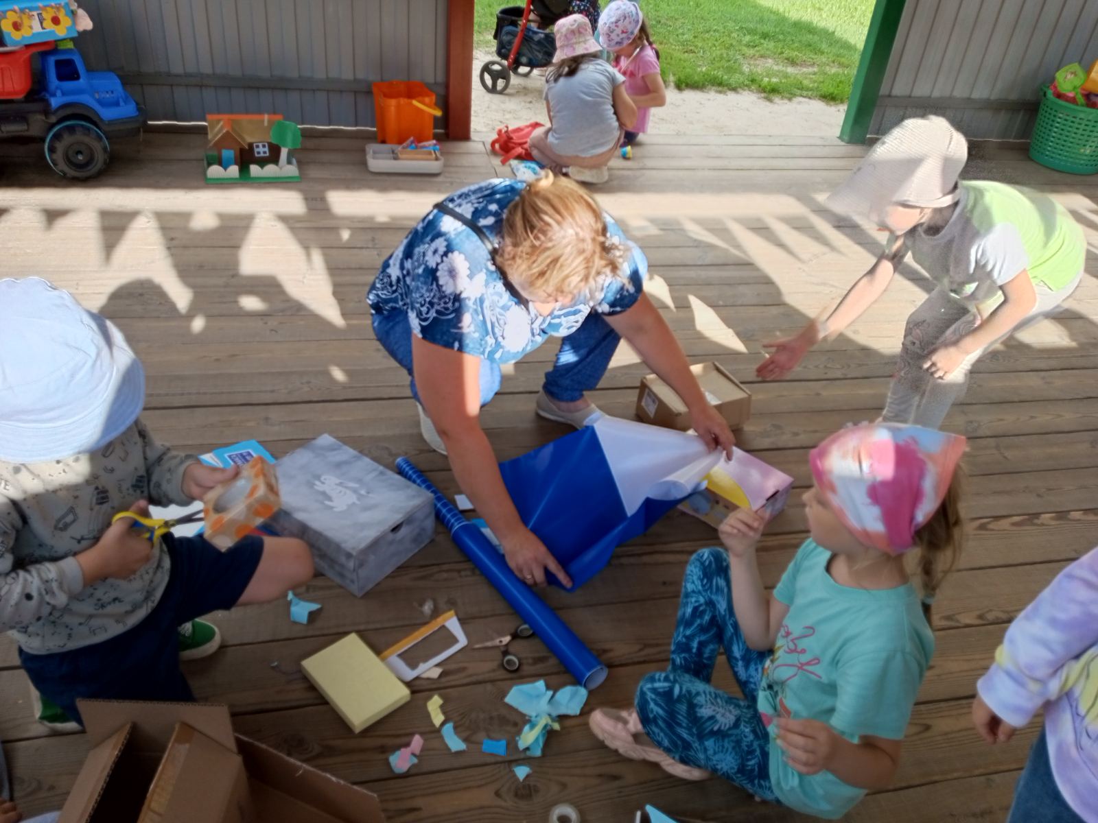 Мы в группе «Улыбка» объявили семейный творческий конкурс «Автомобиль из коробки», где была возможность развивать художественный вкус, конструктивные способности, воображение не только детей, но и у взрослых. Ребёнок чувствует свою значимость в процессе совместной работы, гордость за своих родителей, а папы и мамы – ответственность, так как не могут подвести своё чадо, оставив без внимания организованную выставку.