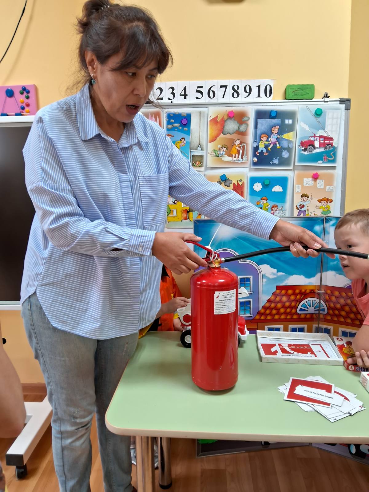 С ребятами в группе "Росток" закрепили знания как нужно действовать в случае пожара. Познакомились со знаками пожарной безопасности, которые укажут направление во время эвакуации, узнали где находятся запасные пожарные выходы. Узнали, где находиться пожарный гидрант, на что реагирует пожарная сигнализация, рассмотрели огнетушитель, его внешний вид, как его применяют и многое другое.