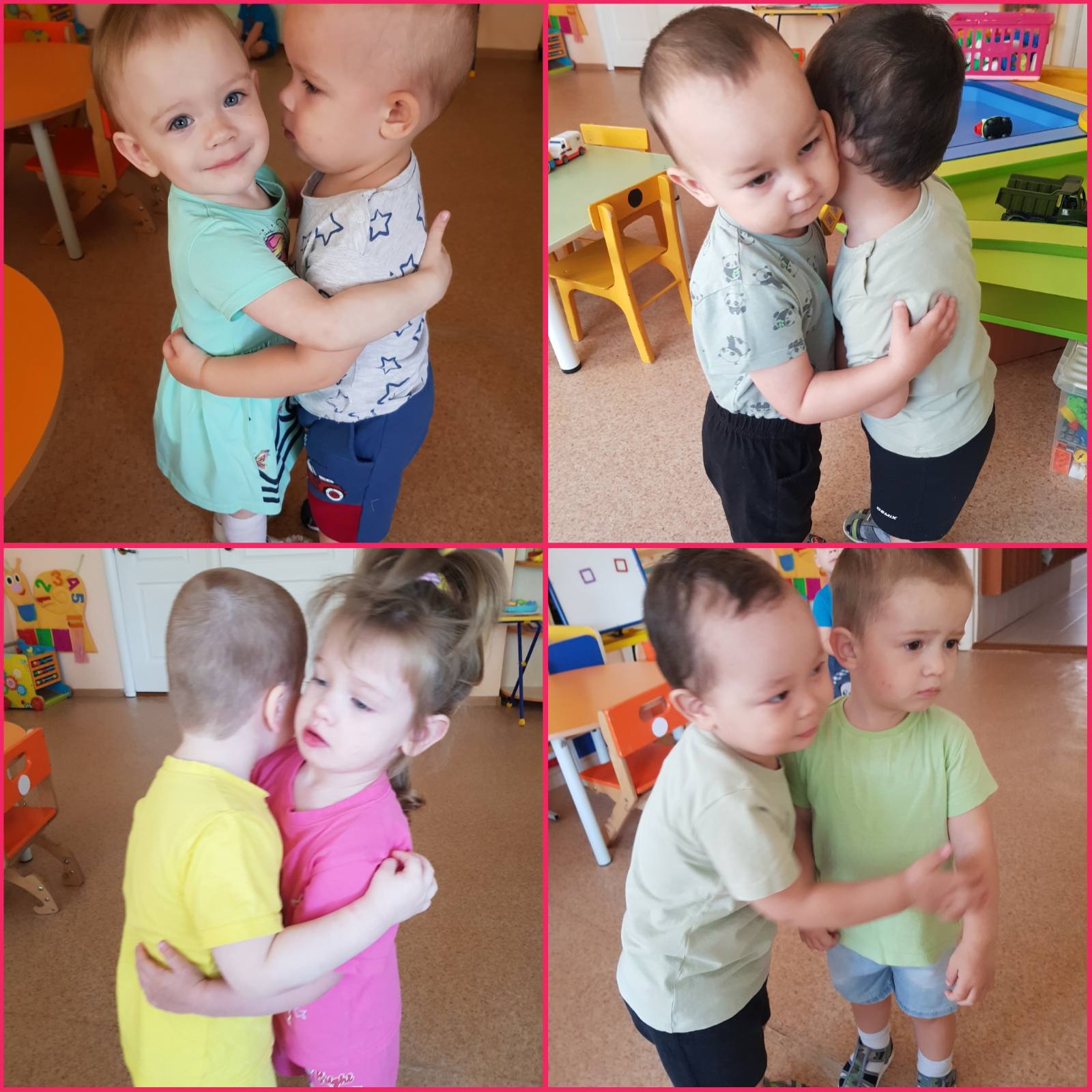 В группе " Горошинка" чтобы облегчить адаптацию, мы организовали "День объятий", друг друга обнимаем, делимся игрушками или меняемся.
