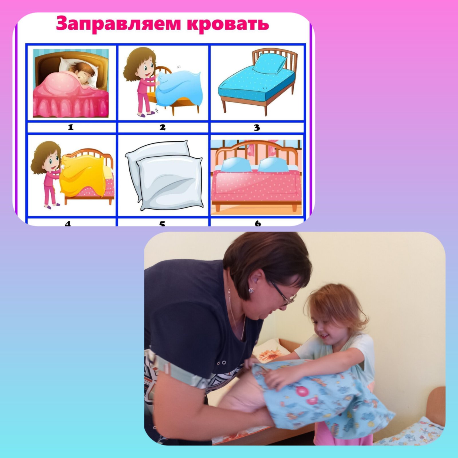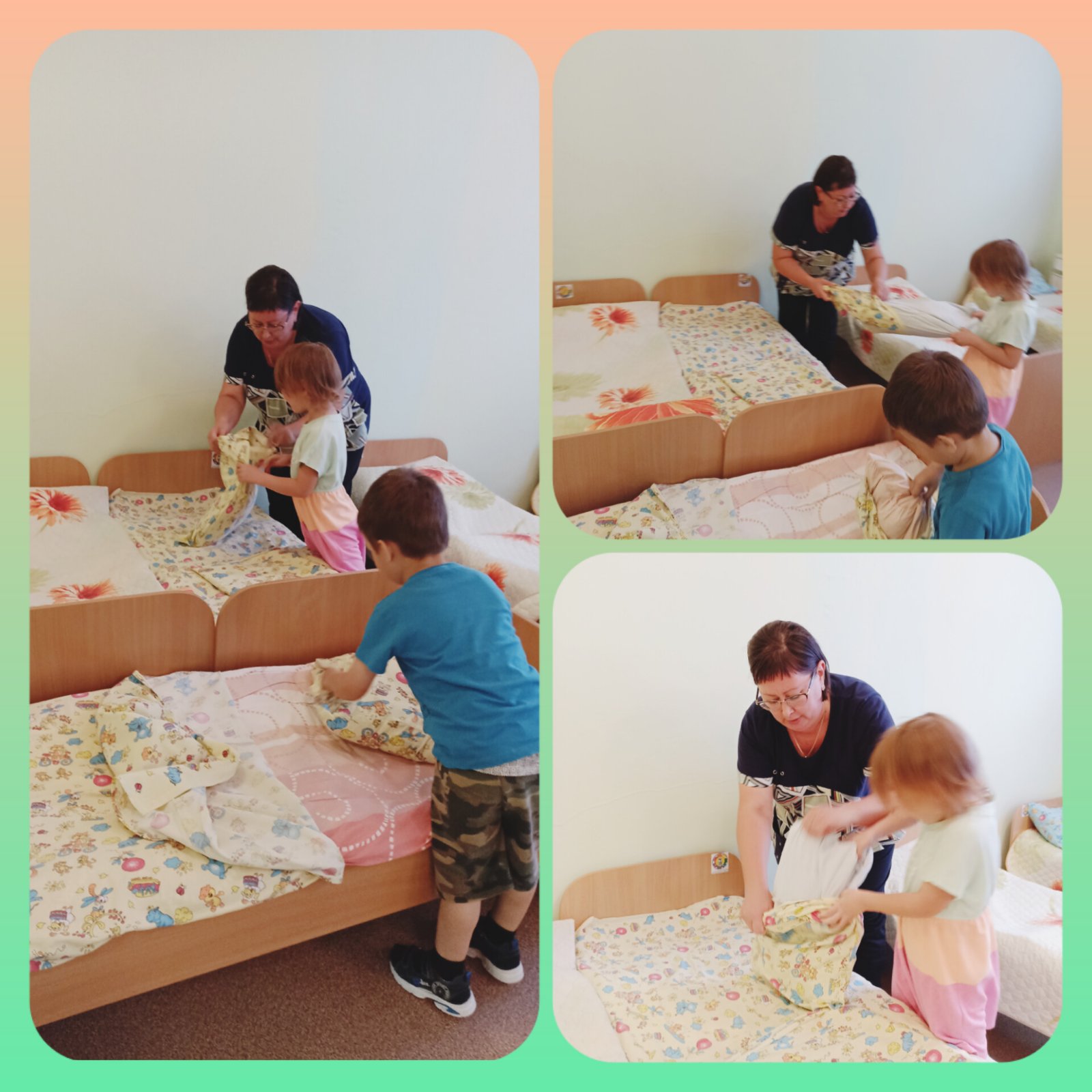 Ведь это формирует привычки убрать постель после сна. Воспитывает самостоятельность. А некоторым ребятам нужен индивидуальный подход, так как это не так уж и легко. Помощь помощника воспитателя здесь неоценима!