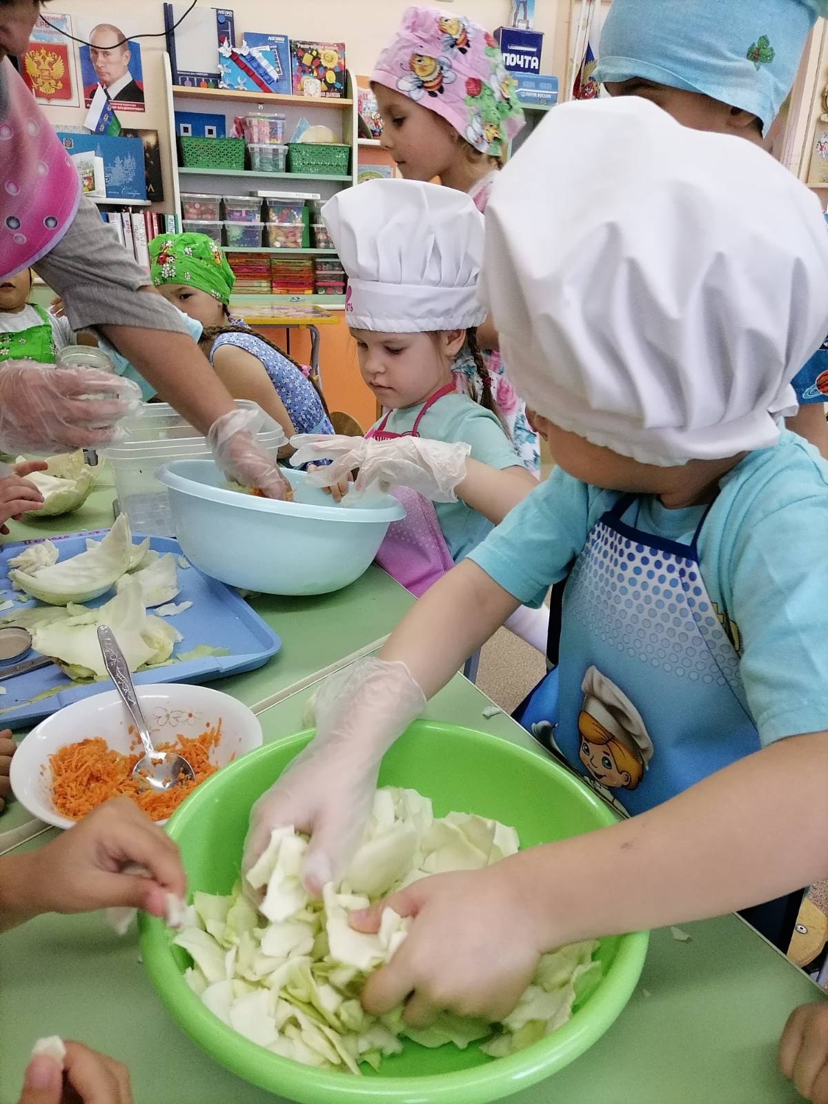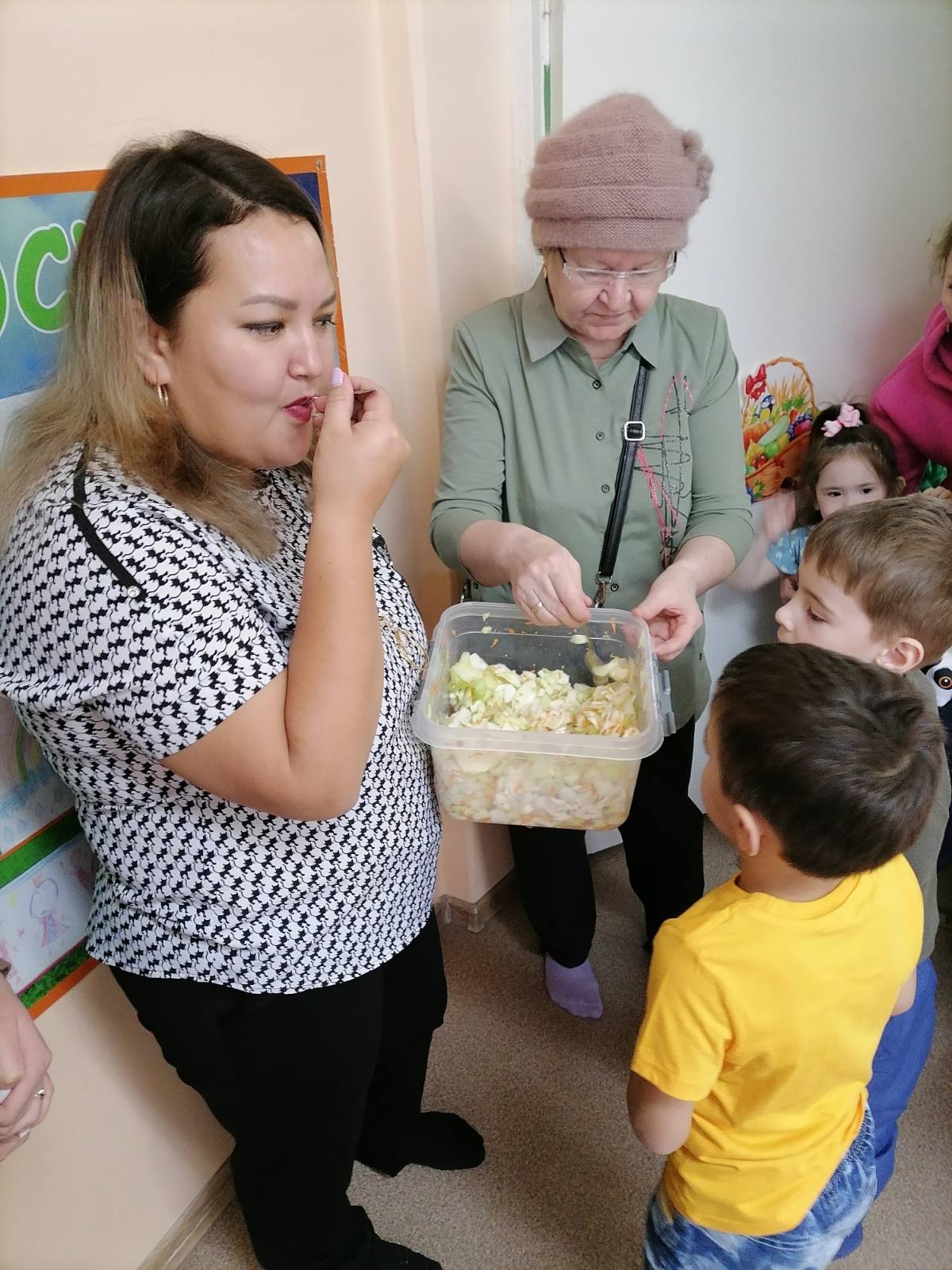 Дети группы "Росинка" тоже отметили этот день коллективной засолкой капусты.