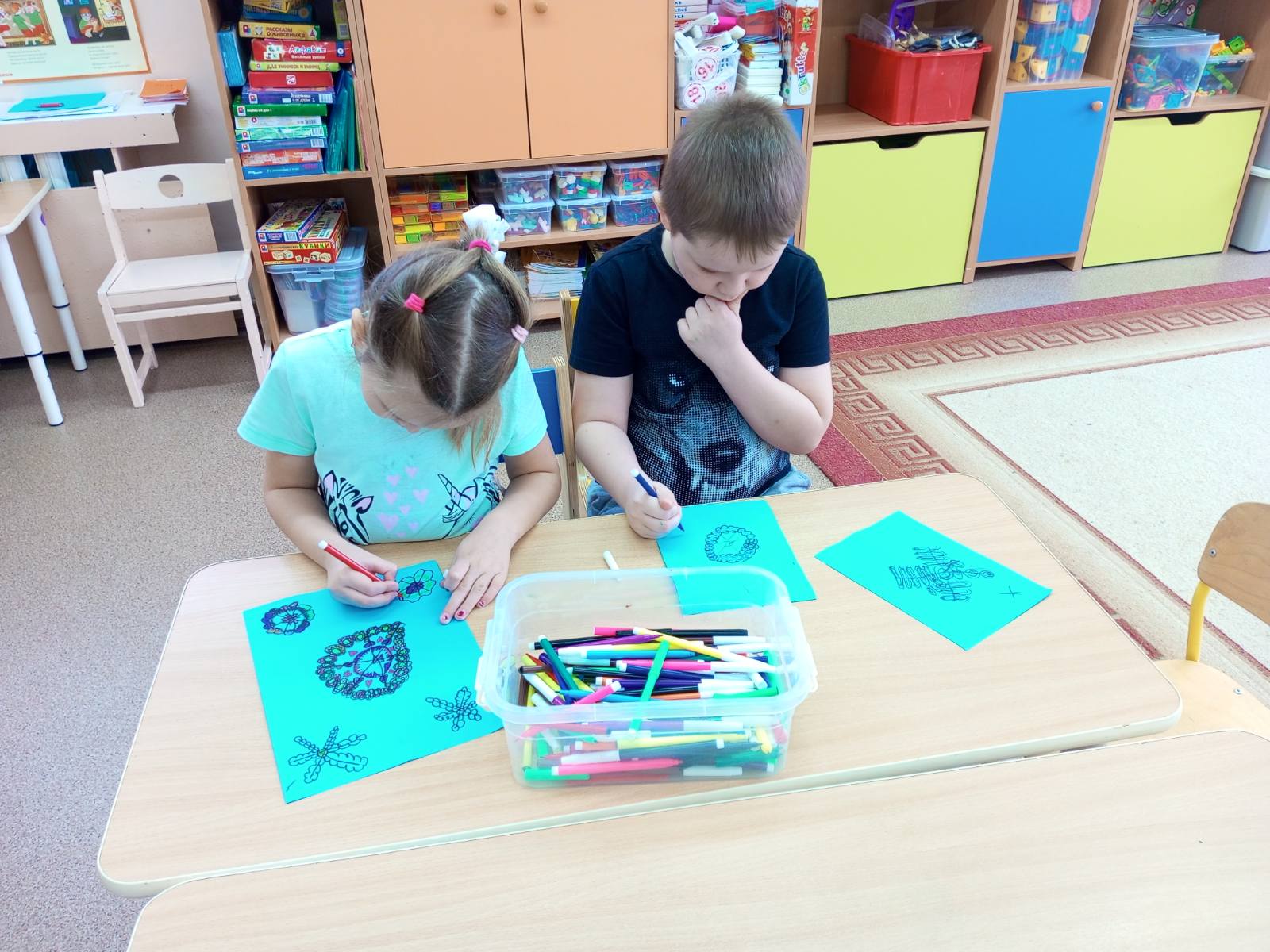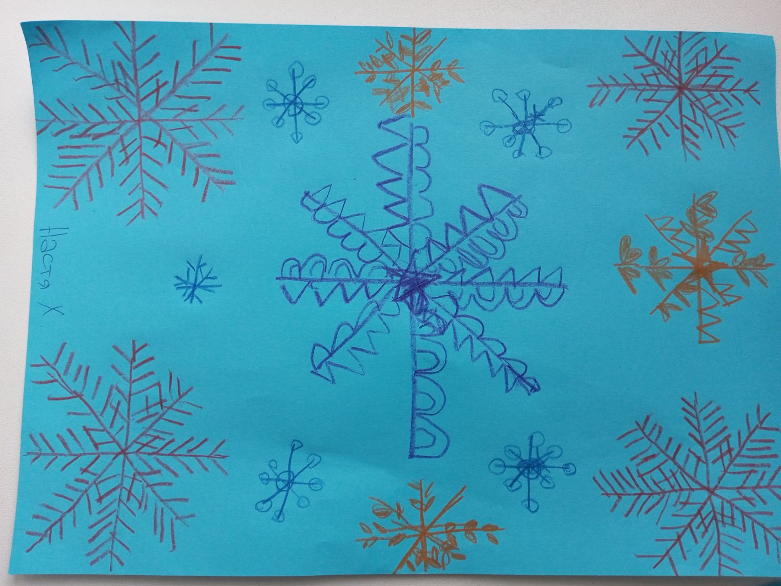 Выделяя необычную красоту морозного узора, Настя научилась создавать такие узоры в художественной школе. Захотела поделиться этим новым способом с детьми, научить рисовать их в стилистике кружевоплетения. Дети использовали разные декоративные элементы - точка, круг, завиток, листок, лепесток, волнистая линия, прямая линия с узелками, сетка, цветок, петля, создавая свою работу. У каждого ребенка получился неповторимый рисунок, который оценивала наш «эксперт» и дети.