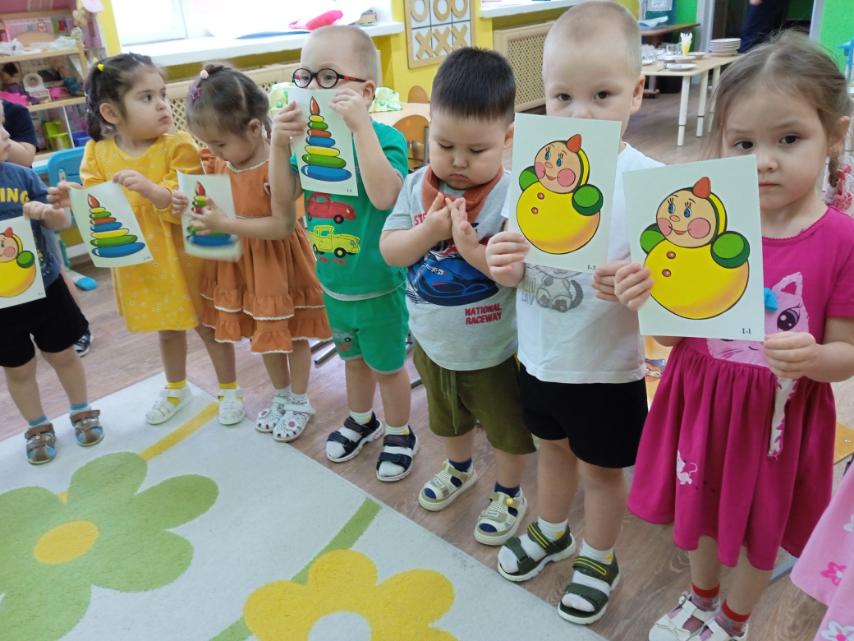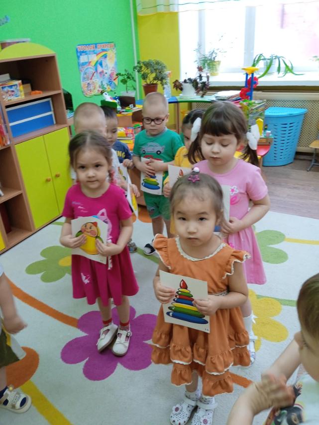 В ходе игр обогащается словарный запас словами: высокий, пониже, самый низкий, широкий, поуже, длинный, покороче, поровну, один, много и т.д.