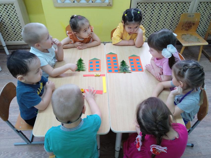 В дидактической игре «Сравни домики, рыбок, елки», дети находят сходство и отличие. В игре «Прокати машинку» малыши катают транспорт то по длинной, то по короткой, то по узкой, то по широкой дорожке.