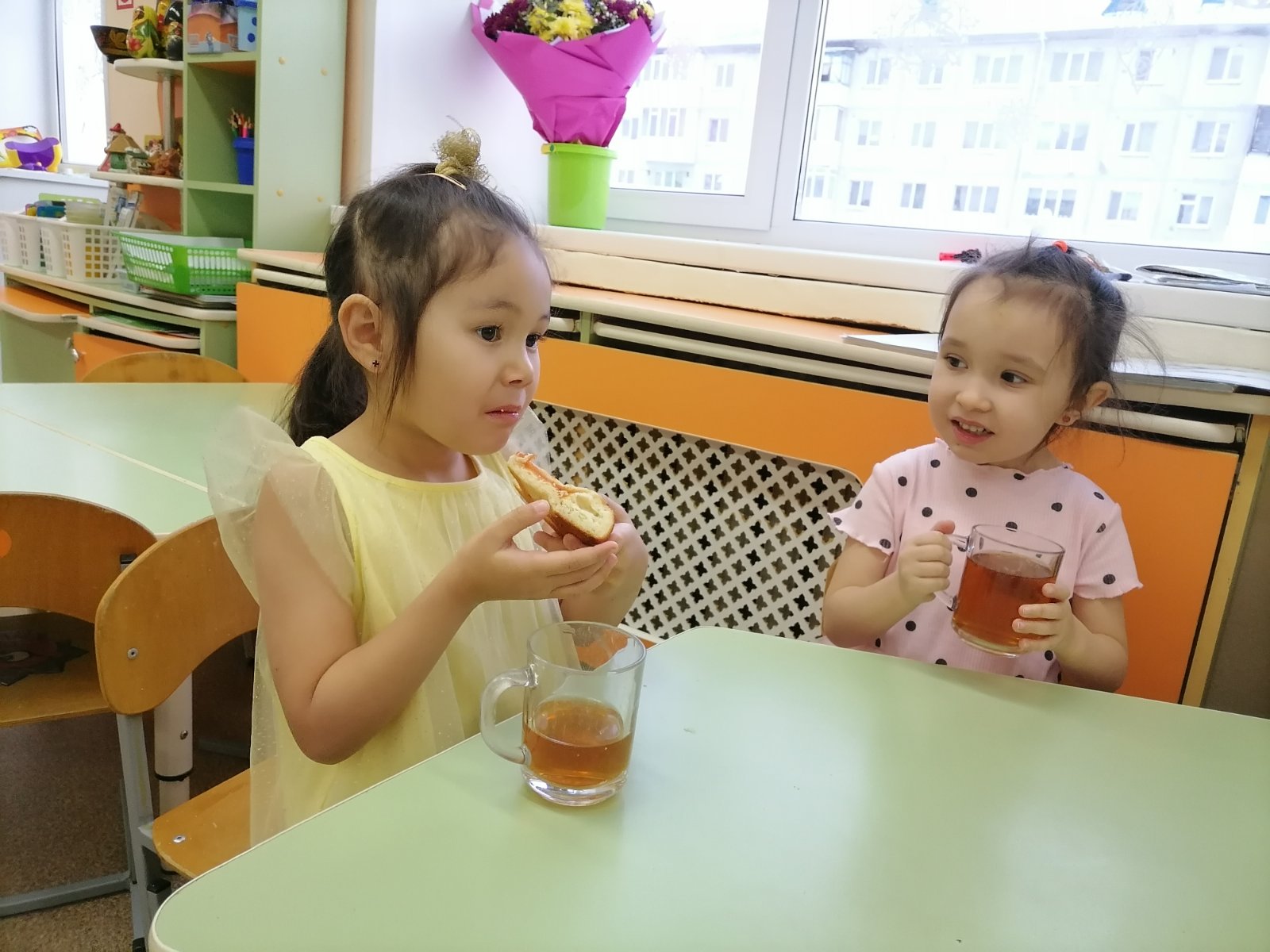 Вдоволь наговорившись, узнав много интересного о чае, дети с удовольствием сели пить полезнейший чай с шиповником и именинным пирогом, которым угостил нас наш любимый детский садик в честь своего дня рождения.