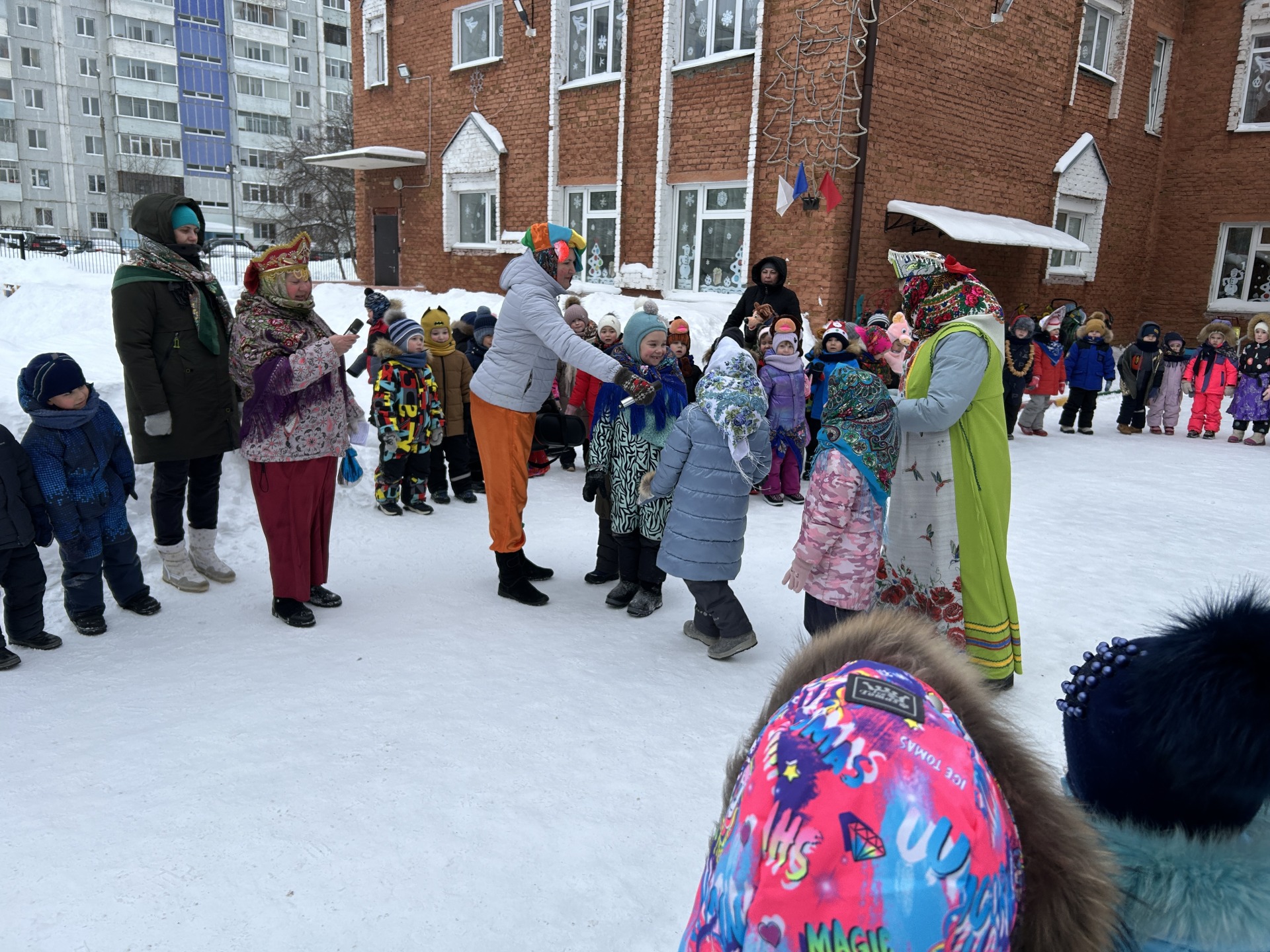 Хороший эмоциональный настрой подарили ряженые детям, родителям и сотрудникам детского сада. Они исполнили колядные песни, присказки, заклички, прославляя Коляду. Водили хороводы, играли в народные игры, устраивали веселые переплясы.