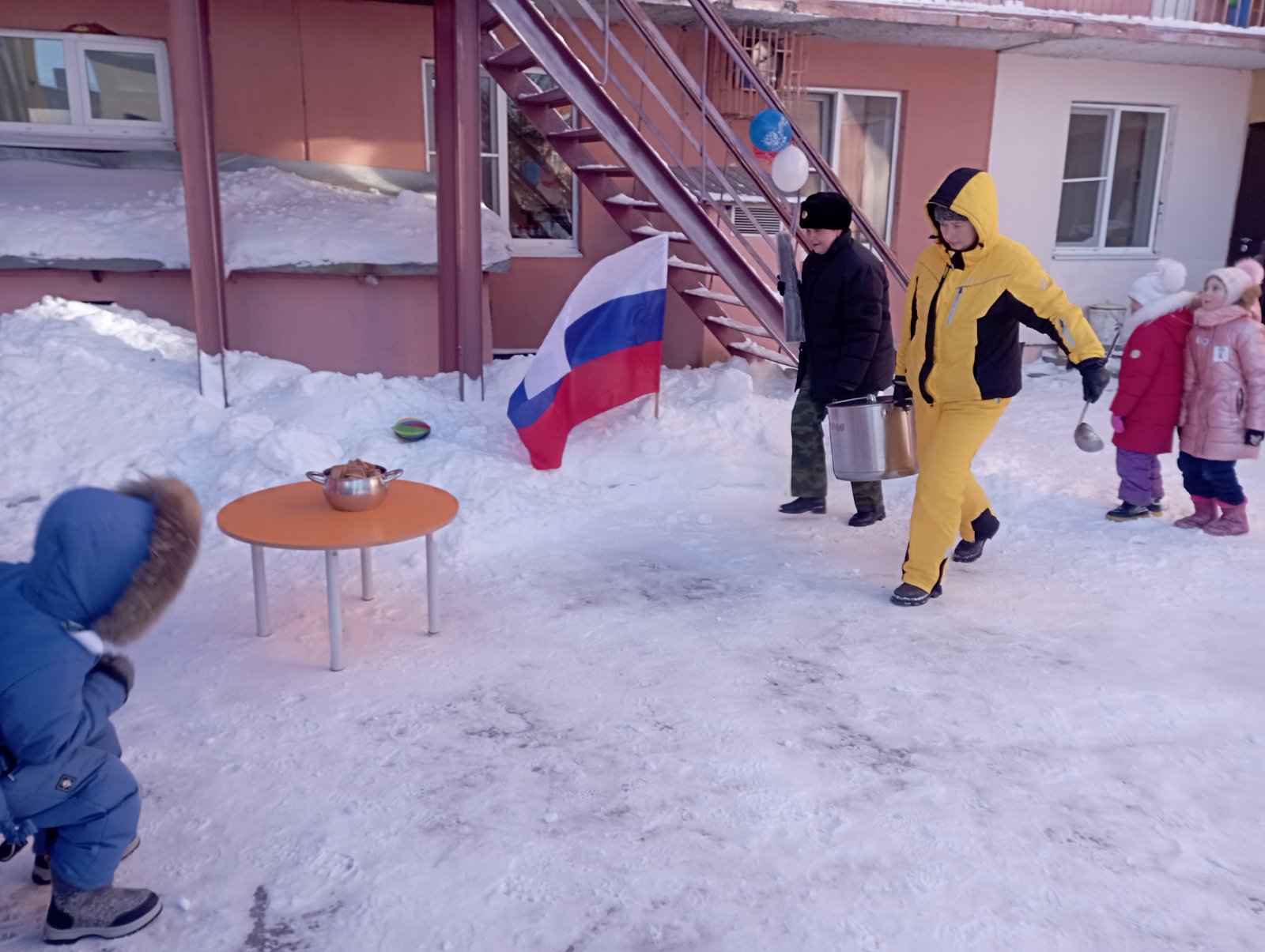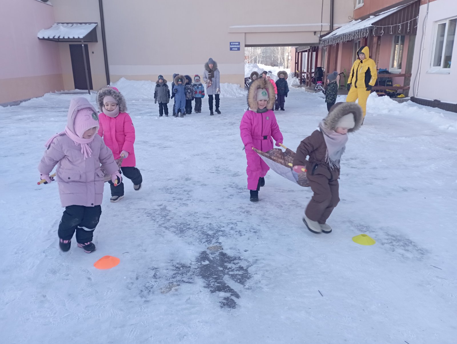 Игра «Зарница» была проведена на свежем воздухе и построена в форме военно-спортивной эстафеты, где команды продвигались по определенному маршруту: «Доставка боеприпасов», «Пройди через болото», «Разминируй поле», «Сбей самолет», «Костер» и др. Больше всего детям понравилось задание «Разминируй поле», в котором детям предлагалось найти «мины» закопанные в снегу.