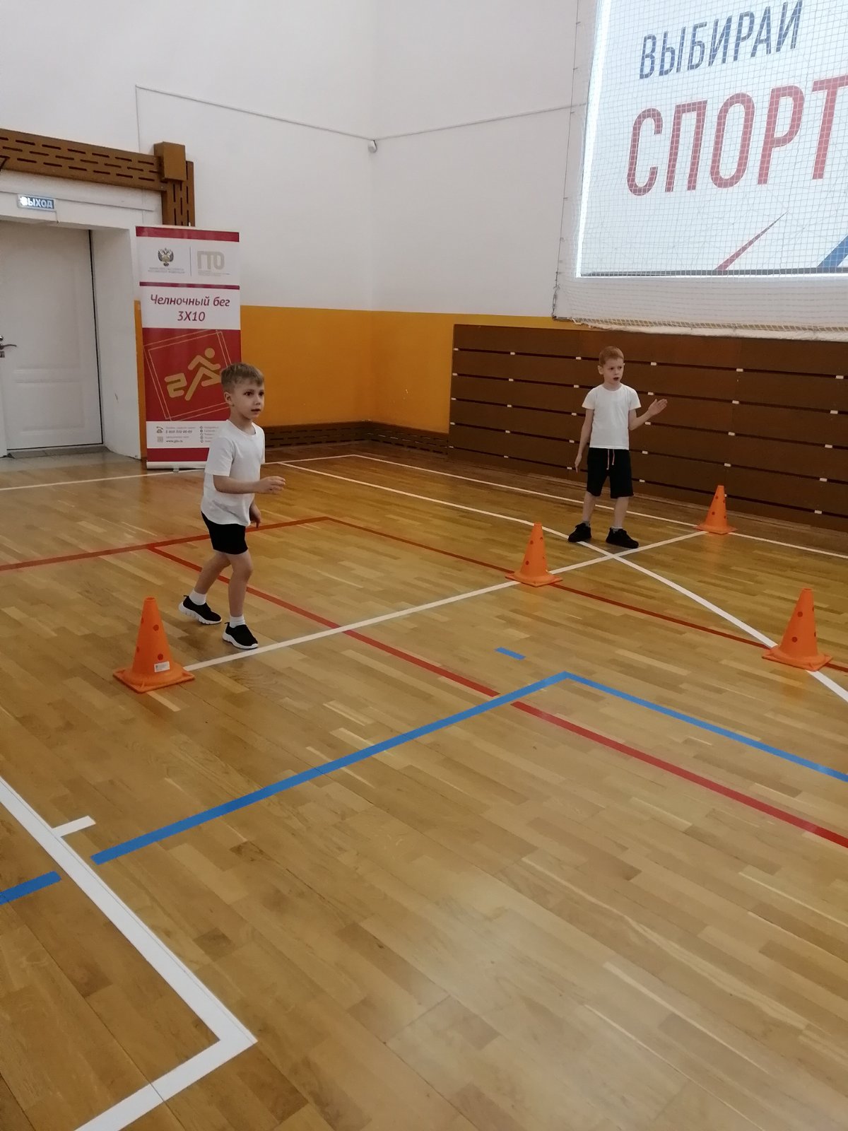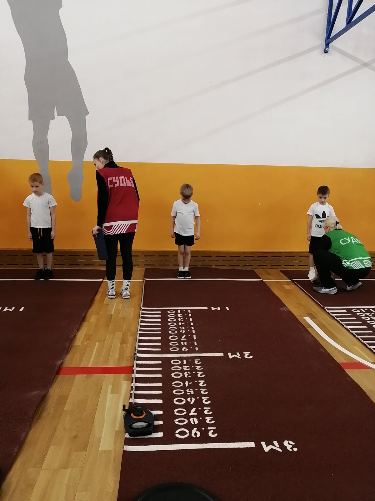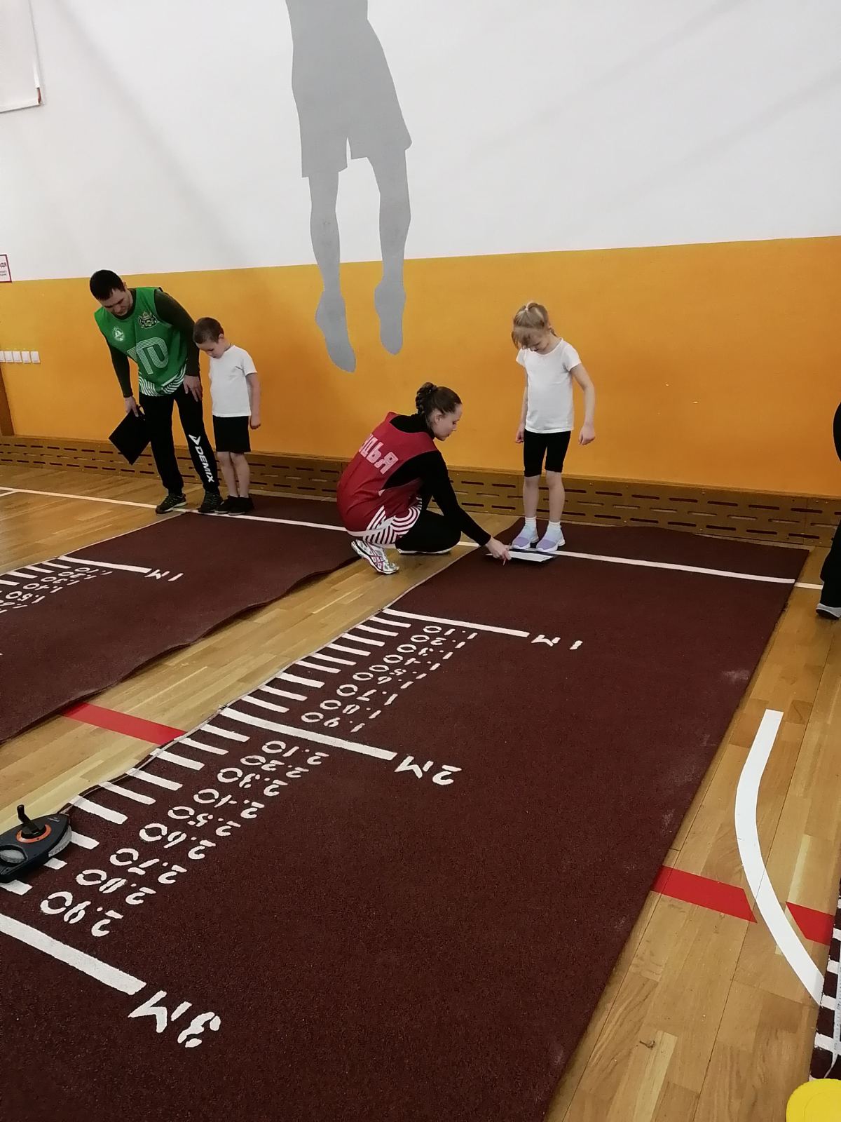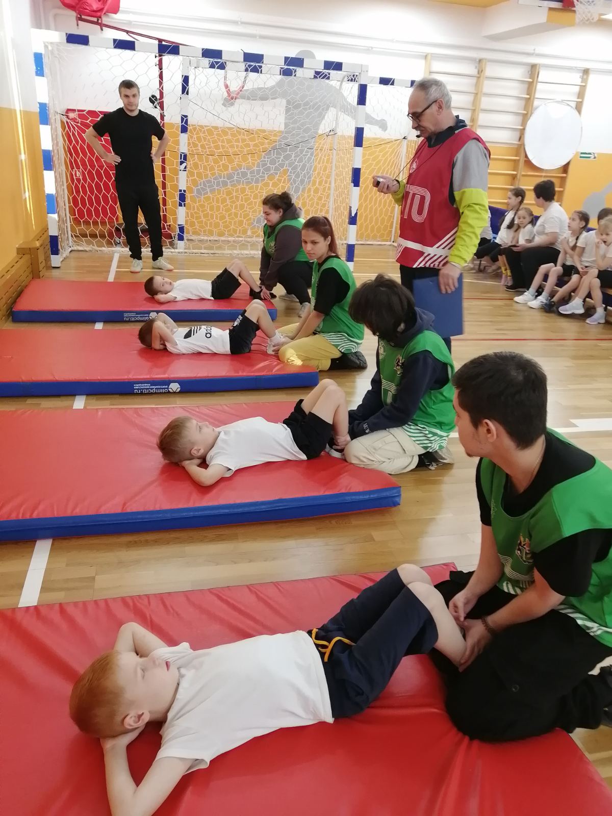 Дети принимали участие по нескольким видам спорта:челночный бег, прыжки в длину с места, поднимание туловища из положения лежа на спине, наклон вперед из положения стоя на гимнастической скамье, метание теннисного мяча в цель.