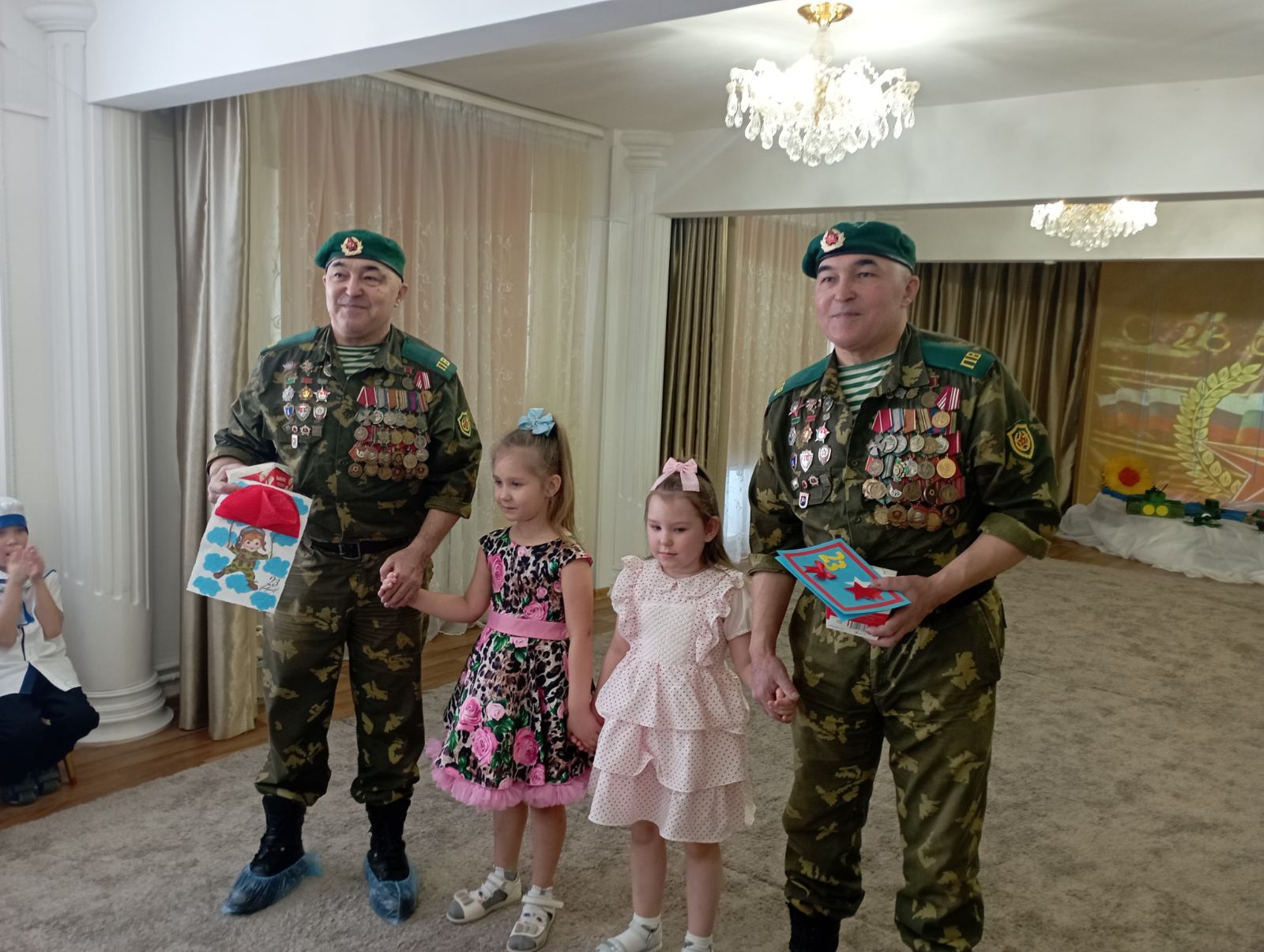 В конце встречи, педагоги и дети поздравили и поблагодарили гостей за интересный рассказ и подарили открытки сделанные воспитанниками подготовительных групп "Речецветик" и "Непоседы".