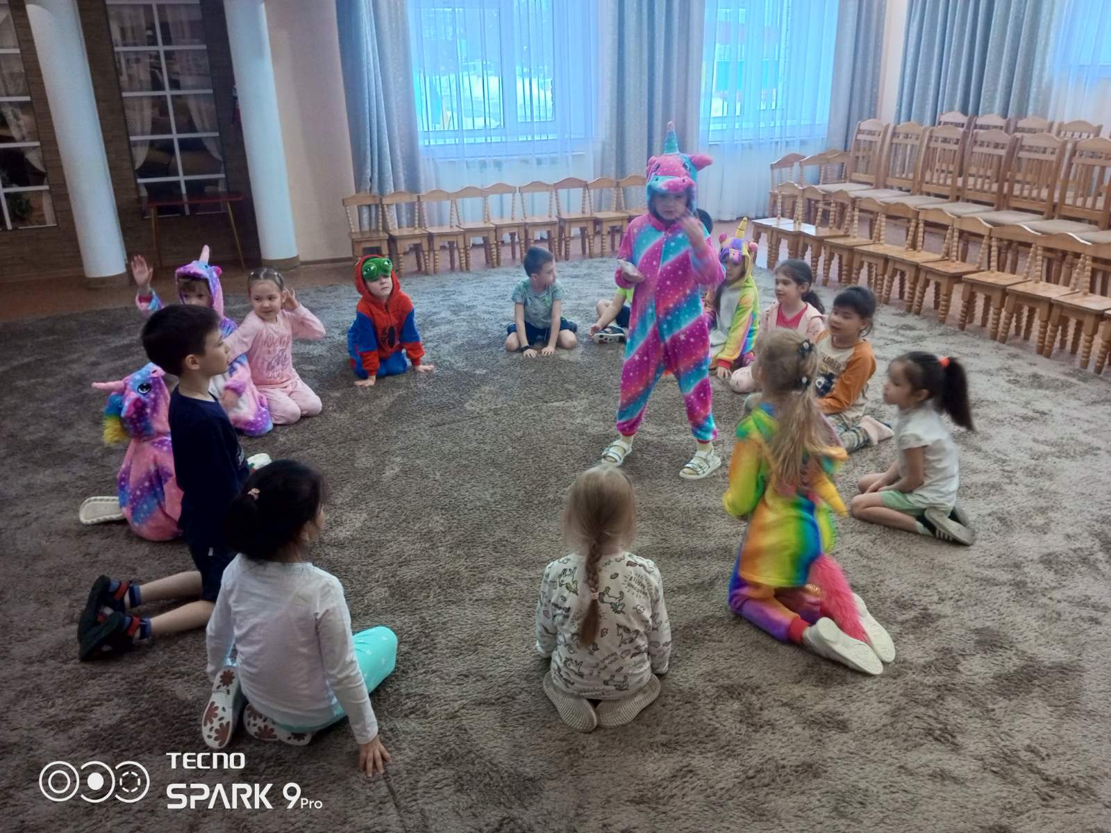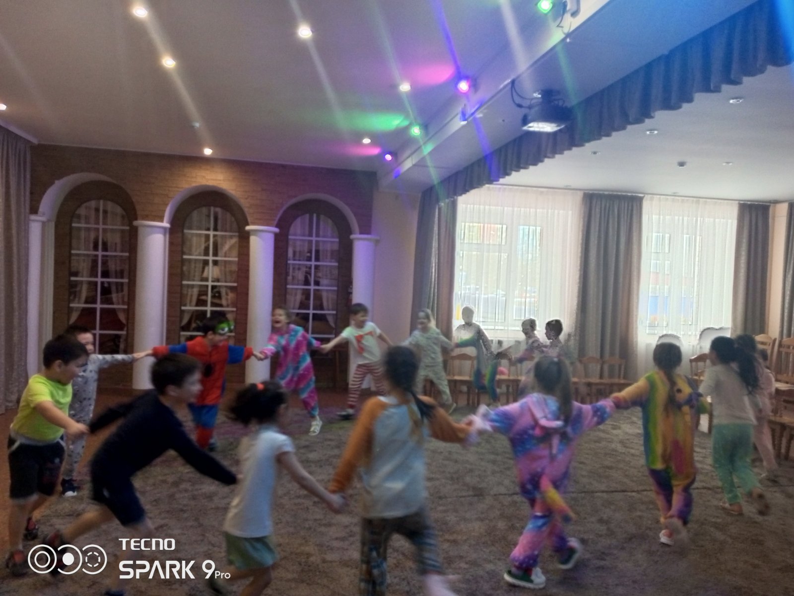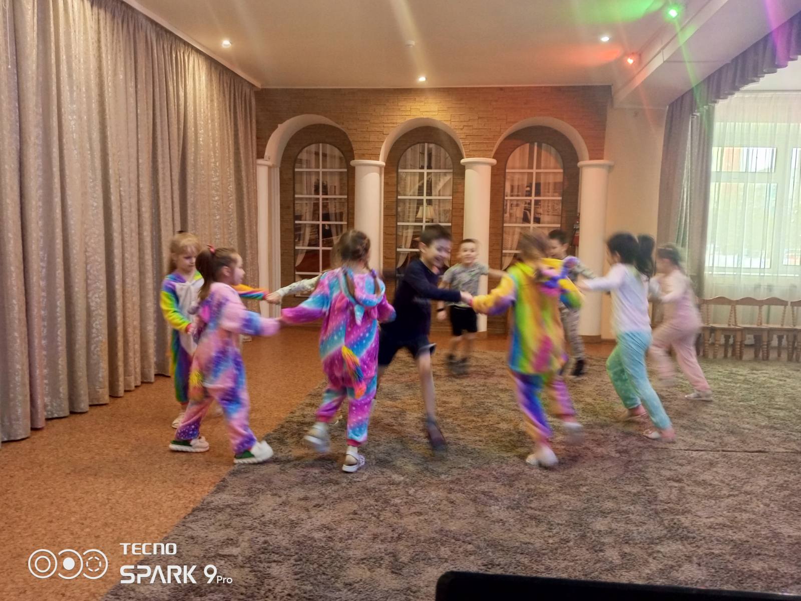 Ведущие Михей и Настя поприветствовали участников. Дети не просто резвились, веселились и танцевали, а играли в игры, которые приготовили ведущие – дети с родителями, изображая разных животных, отгадывая по карточкам задания, слушая разную музыку, придумывали танцевальные движения.