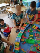 Вот почему с самого раннего возраста мы, с детьми группы «Непоседы», учим правила дорожного движения, безопасное поведение на улицах, дорогах, в транспорте. Малыши рисуют, лепят «Светофор», «Дороги», играют в дидактические игры «Собери светофор, машину», «Что это, какой транспорт?», «Четвертый лишний», в сюжетно – ролевую игру «Мы автомобилисты», конструируют «Дороги - узкая, широкая»; продолжаем знакомиться с дорожными знаками. В речи детей активизируем слова: пешеход, водитель, светофор, пассажир, пешеходный переход, «зебра», налево, направо, вперед, назад, автомобиль, опасность, внимание.