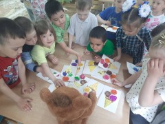 К ребятам группы "Звездочка " приходил косолапый мишка и попросил приготовить мороженое для своих друзей, так как по дороге,пока мишка нёс мороженое , оно расстаяло. Целью праздника стало вызвать у детей желание узнать историю появления данного лакомства; определить свойства мороженого: полезные и отрицательные;