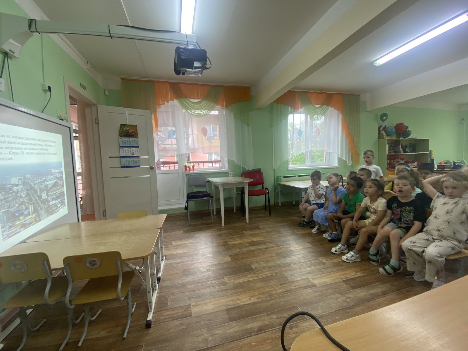 Ребята с большим интересом слушали рассказы воспитателя и рассматривали презентацию, видеоряд которой был наполнен фотографиями природы и достопримечательностей Тюменской области.