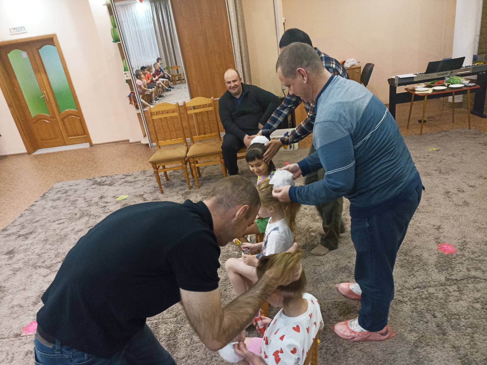 Наш праздник открыли дети, которые прочитали трогательное стихотворение в видеоформате и высказали свои пожелания, чем очень удивили и тронули своих родителей. Папам на празднике ребята не давали скучать, ведь им пришлось пройти некоторые испытания ,и на время заменить мам.
