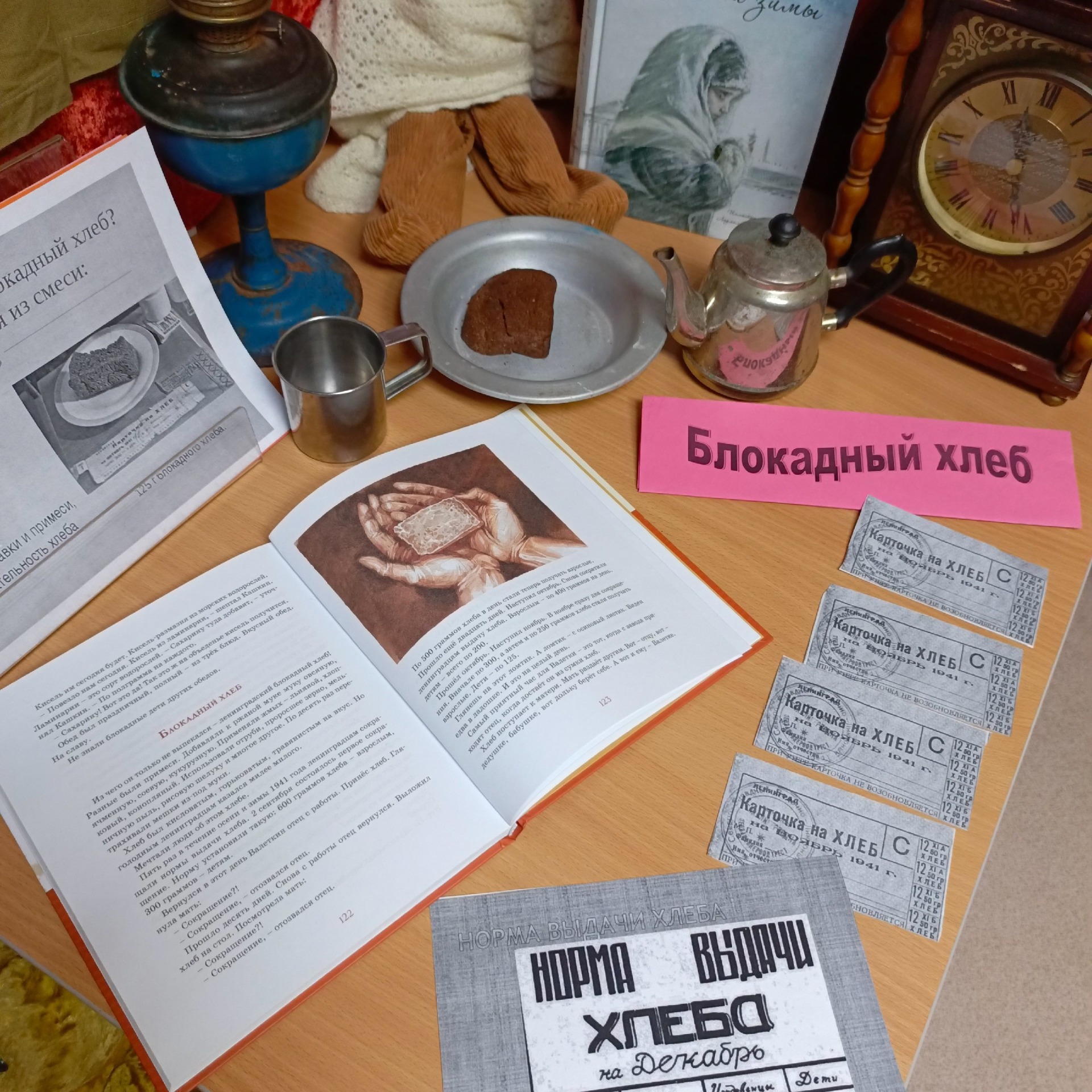 Ребятам показали видео ролики о жизни ленинградцев в годы блокады. Рассказали о тяжёлых испытаниях, выпавших на долю жителей осаждённого города: о холоде и голоде, о детях и жителях, работавших наравне с мужчинами на заводах, о защите и обороне Ленинграда советскими солдатами, о том с каким трудом и потерями Ленинград выстоял в те годы.